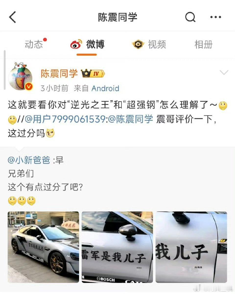 陈震这个人,典型的说一套做一套,极力想向公众证明自己不是处处针对+阴阳小米,但是跟小米相关的消息,正面消息基本没转发过,带一丁点舆论和负面的消息几乎都转,他最大的金主爸爸最近出的一些负面消息,他是从来没转过,这个时候开始装死,有本事就一视同仁,当然,他根本不敢转,一方面是怕断了合作,毕竟这个800后面带了“万”,另外转了也会被OTA。