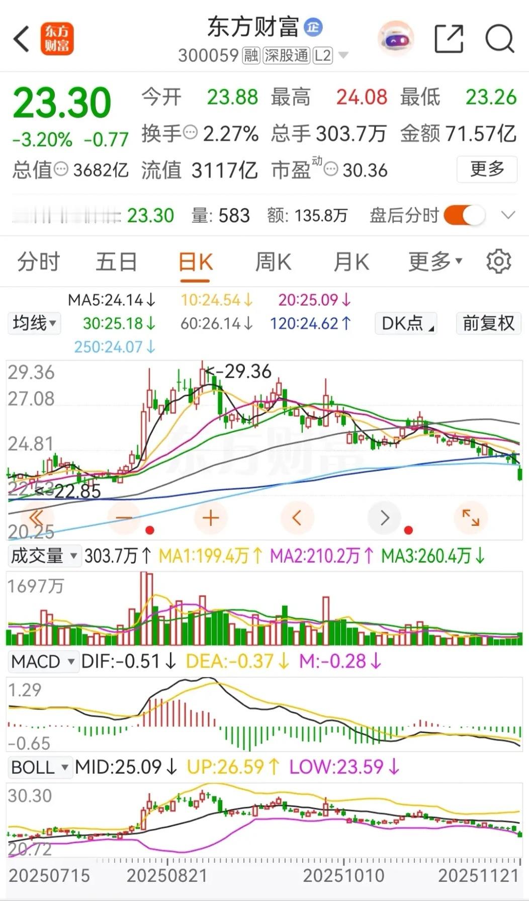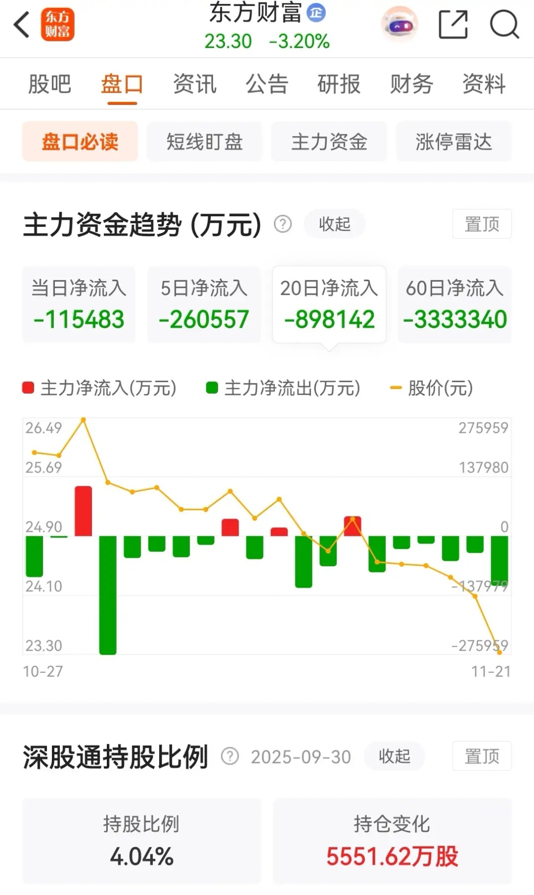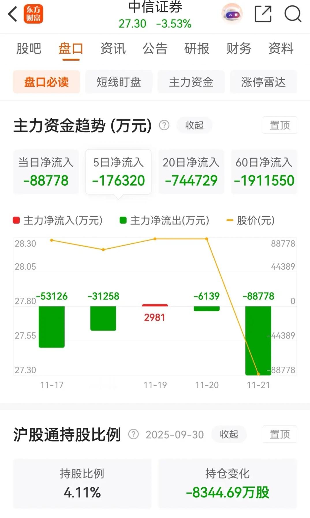 东方财富和中信证券今天双双大跌,东方财富更是连续六天下跌,连续六天被主力资金净卖