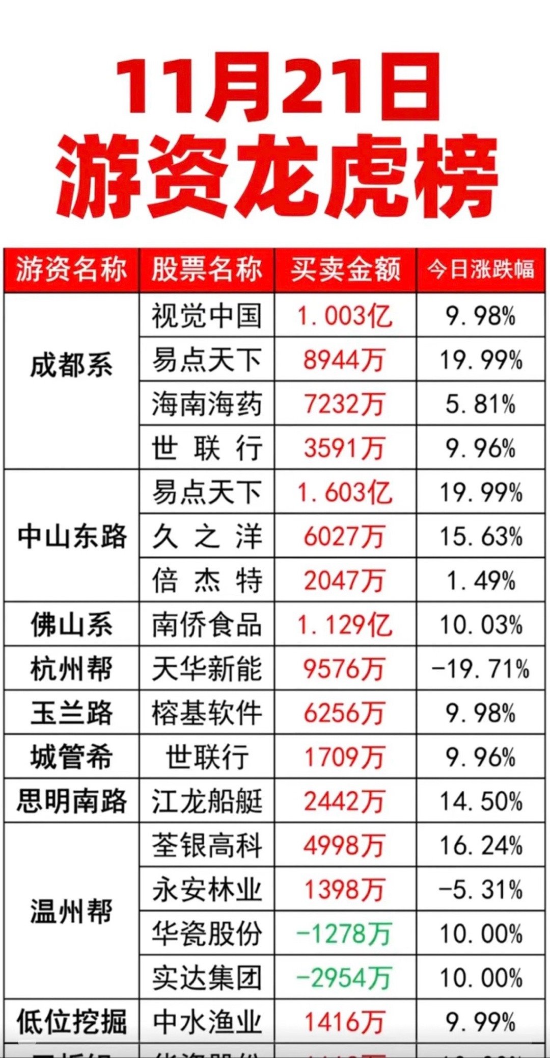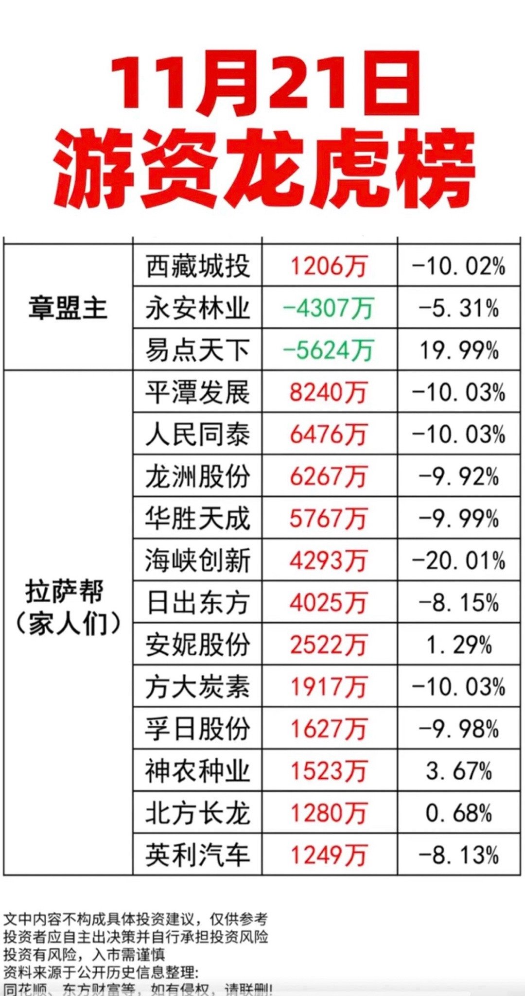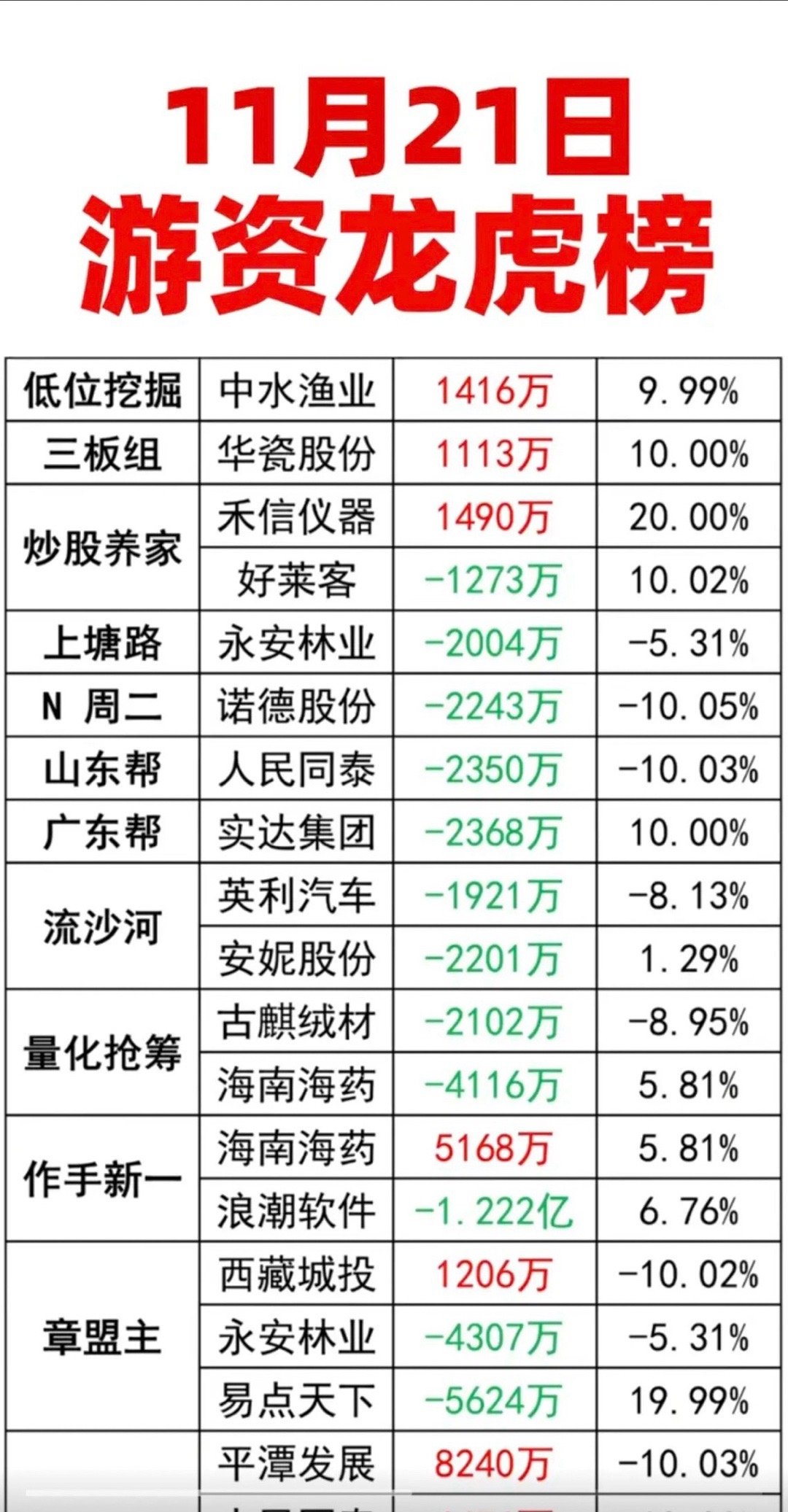 11.21周五 游资大佬龙虎榜!拉萨帮,全部都是买入?这么看好市场?还是集中在海南自贸港板块,另外ai应用智能体,软件开发,获得资金认可和抢筹。