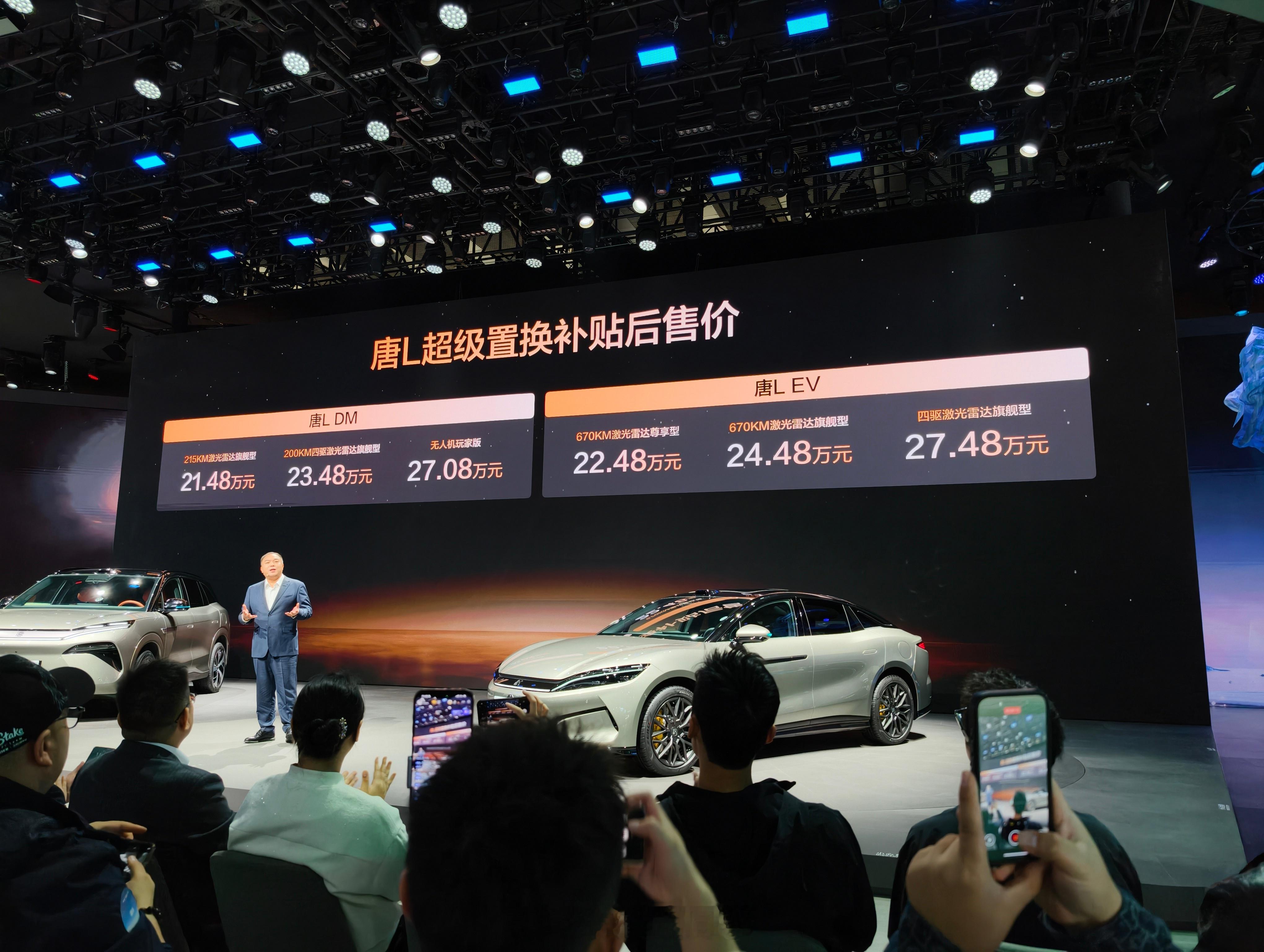比亚迪在广州车展发布了唐L的最新进展,包括OTA升级、新车色上线以及置换补贴后的官方售价区间。唐L依旧分为EV与DM两个主线,共六款车型,补贴后售价21.48万~27.48万元。同时提供最高4.5万元的限时购车权益,包括置换补贴、新色权益、金融与延保服务等。外观层面,此次新增了橄榄绿与琉光银两种车色,其中橄榄绿采用金属漆搭配黑色车顶,呈现更强的视觉识别度。色彩强调了金属反射效果与不同光线下的变化,属于近年来汽车设计中较为流行的低饱和度金属色路线。智能化部分是此次OTA的重要内容。唐L的DiLink 150智能座舱更新了 UI、主题、图标和视觉系统,支持根据环境光变化自动调整界面,并加入了更生活化的主题元素。辅助驾驶系统方面,“车位到车位”领航辅助是本次最核心的新功能,从驶出车位、通行闸机到抵达后自动寻位泊车,实现了路径上的连续辅助,减少用户在城市场景中的操作负担。生态方面,比亚迪与家电、母婴、运动相机等多个品牌展开合作,形成“人—车—家”联动体验。例如可通过家中智慧屏查看车况,或在车上远程操控家电,并提供多种可与车机联动的外设与生活产品,用于改善家庭出行和户外使用情境。整体来看,本次更新重点是通过色彩、交互、智能驾驶与生态服务的补充,完善唐L作为中高端SUV在家庭使用场景里的体验跨度。