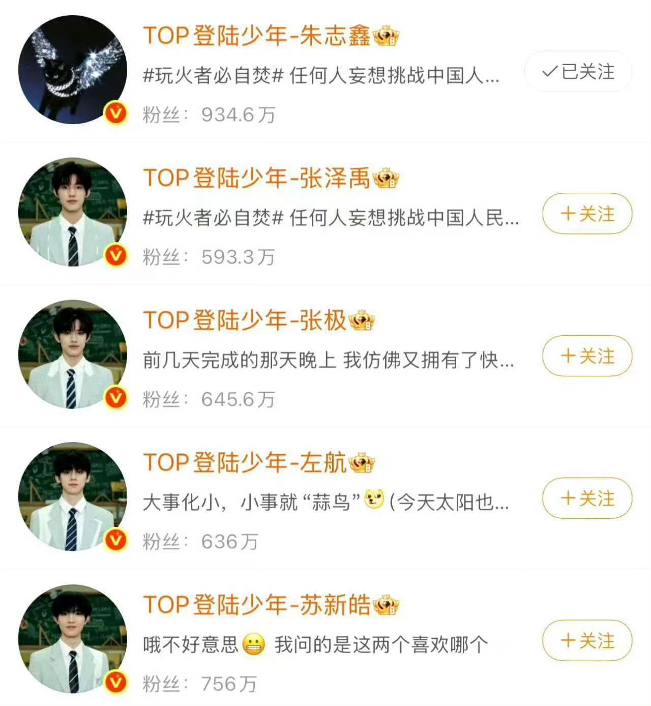 张泽禹💚张极🧡左航🩵苏新皓❤️