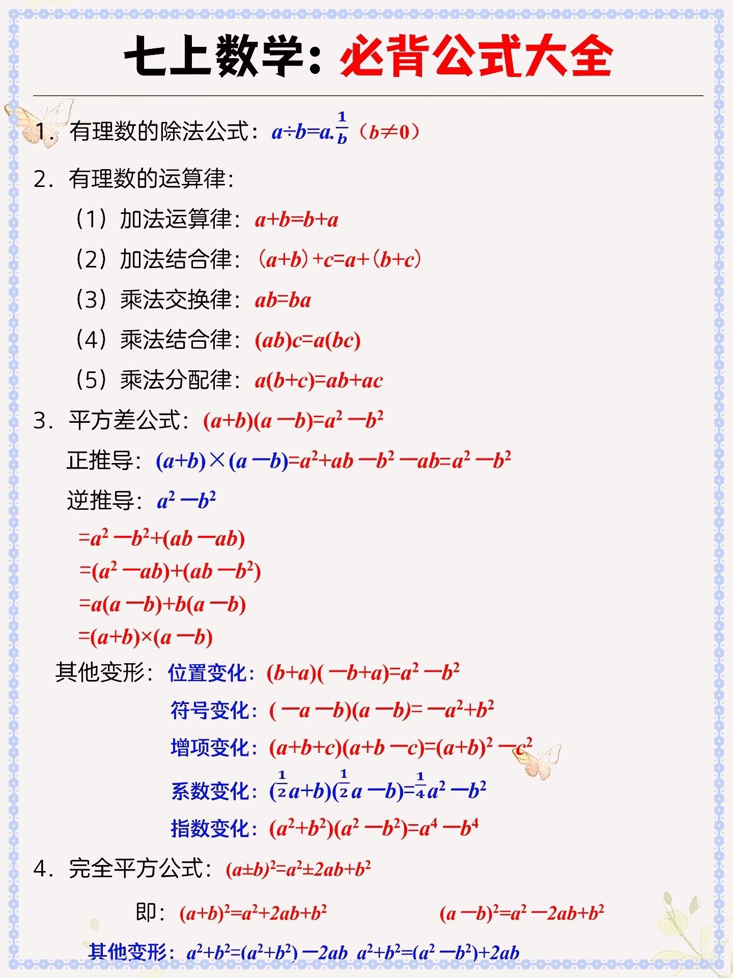 七年级上册数学暑假预习必背公式汇总。七年级上册数学暑假预习必背公式汇总...