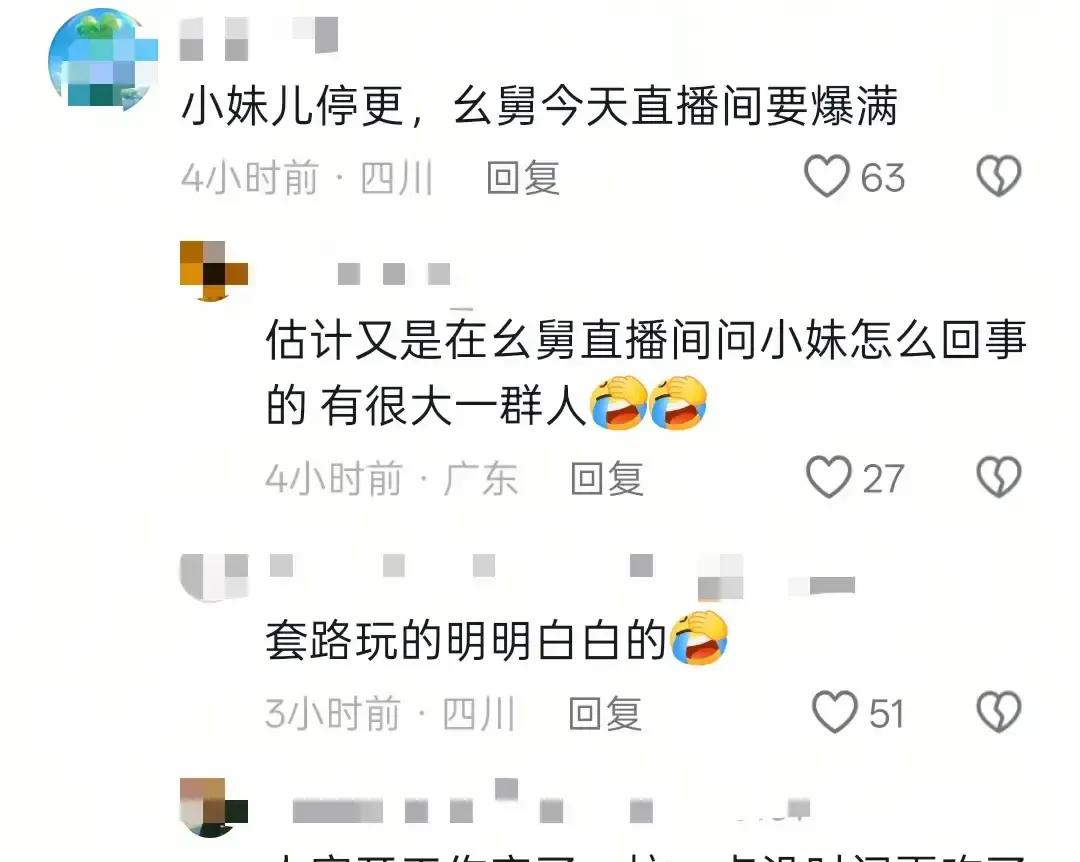 小妹突然停更,一句“需要休息”把三千万粉丝晾在原地。 大家还没回过神,幺舅就办起