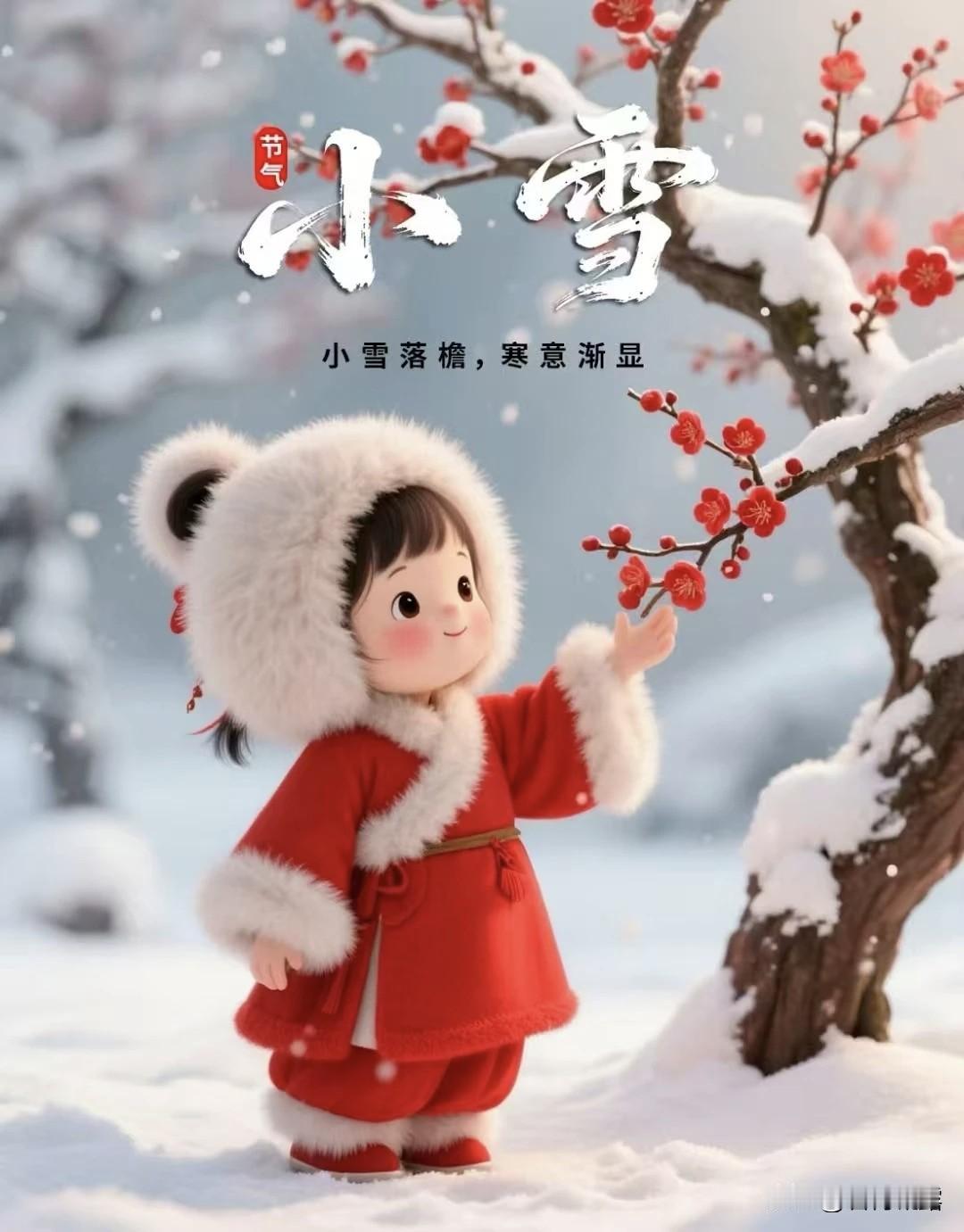 今日周六逢小雪节气,家乡也迎来了小雪节气。小雪节气是立冬后的第一个节气。在二十四节气中,小雪是第20个节气,冬季的第2个节气,通常出现在每年公历11月22日或23日。 小雪节气到啦,预示着冬意越来越浓啦,小雪时节,寒来岁晚,雪花轻飘染冬色,愿你照顾好自己,平安度寒冬,静待春暖花开时。 窗外雪花漫舞,屋内暖意融融,小雪节气,愿你被生活温柔以待,喜乐常伴身你身边!