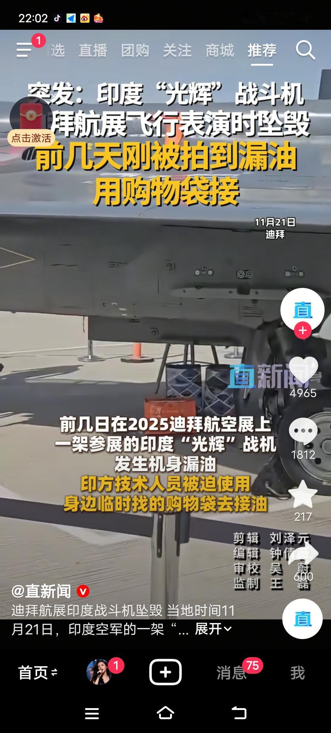 这一次, 在全世界面前丢了大脸,印度想捂也捂不住了! 明明光辉战斗机在迪拜航展上早曝出漏油问题,印度官方还急着辟谣,说漏的是空调冷凝水,转头就硬撑着让战机上表演场,不坠机才怪。 这事就发生在航展最后一天的众目睽睽之下,无数观众和媒体亲眼见证,更讽刺的是,印度空军飞行员前一天还对着巴基斯坦的枭龙战斗机冷嘲热讽,贬低对方战机性能不足,结果转天自己驾驶的光辉战斗机就失控坠地,连人带机一同升天,打脸来得又快又狠,根本没给印度留遮掩的余地。 要知道,印度在和巴基斯坦的空战里,早就习惯了捂着损失不撒手。之前双方爆发大规模空战,巴基斯坦说击落8架印方战机,印度却屡次修改战果,还嘴硬称自己击落更多巴方战机,拼命粉饰所谓的胜利。 可美国国会的报告直接戳穿谎言,证实印方有3架战机被击落,法国方面也查到6架印军阵风战机失联,英国更是拿出弹射座椅数据佐证印方损失惨重,即便如此,印度依旧敷衍回避,不愿承认战败事实,想尽办法捂紧损失的盖子。 但这次光辉战机坠毁是在国际航展上,现场直播、目击者众多,残骸和浓烟都瞒不住,印度就算再嘴硬,也没法否认战机损失的事实,这下是真的捂不住了。 更关键的是,这次坠毁彻底暴露了光辉战机的性能短板,所谓的“国产骄傲”根本名不副实。这款战机1983年就立项,折腾33年才在2016年服役,说是国产,核心部件却全靠进口,发动机是美国的,雷达来自以色列,弹射座椅是英国的,就是个多国零件拼装的“缝合怪”,兼容性本就有隐患。 性能上更是落后,雷达探测距离只有140公里,远不如枭龙Block3的170公里,搭载的导弹射程110公里,也比不上枭龙配备的射程200公里的导弹,连印度空军参谋长都吐槽,两架光辉打不过一架枭龙。 而且光辉战机可靠性极差,2024年就有一架在训练中坠毁,这次航展参展机漏油后,地勤只能用购物袋临时接漏,如此潦草的维护,足以看出其品控混乱。印度本想靠航展宣传光辉战机,还刚订了97架计划2027年交付,可这次坠毁直接砸了招牌。 本质上,这不是单一战机的问题,而是印度军工体系薄弱、研发能力不足、品控监管缺失的体现,既想靠国产战机撑门面,又没能力解决核心技术难题,只能靠拼装和吹嘘掩盖短板,这次坠毁不过是把藏在背后的问题彻底摆到了台面上,也让印度想靠隐瞒损失维护面子的算盘彻底落空。印度战机被毁 印度战机出场 印度战机危机 印度坠毁事故 印度失事飞机 印度航空坠机 印度航空坠毁