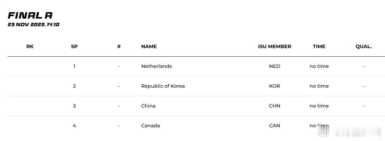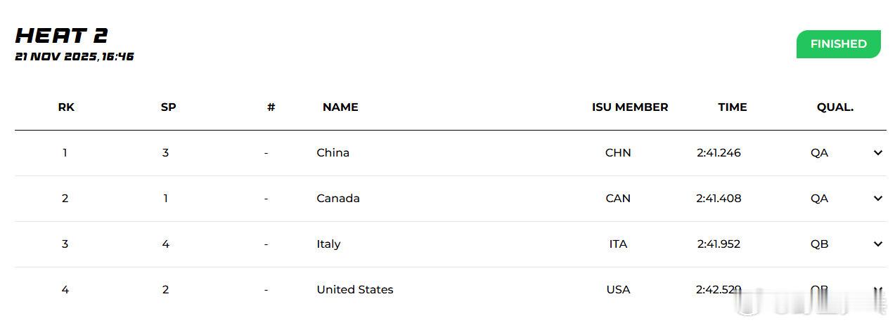 25-26赛季短道速滑世巡赛第三站波兰格但斯克2000米混接半决赛由林孝埈、刘少昂、范可新、公俐组成的中国队滑出2:41.246,小组头名晋级A组决赛中国队将和加拿大、荷兰和韩国争夺冠军