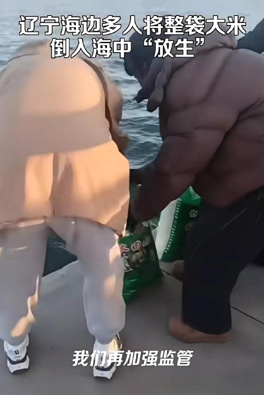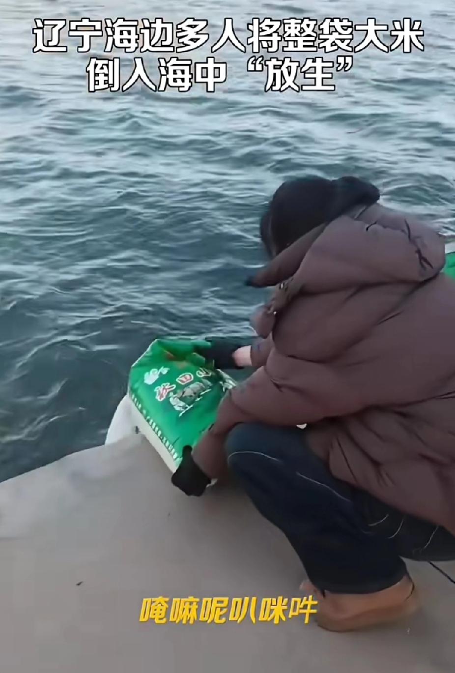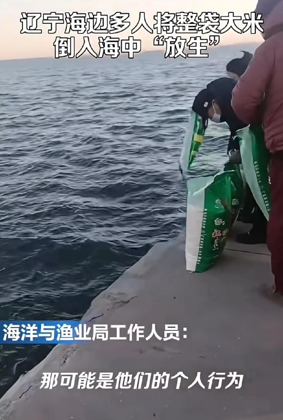 辽宁葫芦岛放生大米后续来了,官方回应批评教育,当地佛教协会撇清关系。 11月20日,辽宁葫芦岛一处海边码头,5位中老年人将10余袋大米批量倒入海中。还双手合十,口中念念有词。一个女子称在海边刚放生,全程行为被路人拍摄,让人大跌眼镜,什么时候放生变成撒大米了呢?真是放生行为五花八门呢。 此视频一公开,网友调侃道:“啥时候放生金条、人民币?我也去,别忘了通知我一声。 经过调查发现,在事发同一个码头,今年7月25日,也曾出现疑似也是他们同一个群体的放生行为,那个时候放生的是一筐螃蟹。同样伴随着念诵仪式。 对于他们的离谱行为,记者电话联系了相关部门。葫芦岛海洋与渔业局明确表示:这属于个人行为,存在严重浪费粮食,破坏海洋生态平衡。 佛教协会平行关系称:放生大米绝非佛教理念,与宗教无关,属个人误解行为。 四家屯街道办事处回应。丢弃大米属于污染环境?大米虽然不是污染物,但是也是浪费粮食,已经开始调查核实了。 放生行为是大妈们认为的一种祈福积德手段,然而她们却误把低成本积德工具误导了,以为一粒米对应的就是一份功德,误将大米作为放生对象。 说到底还是低成本需求,大米价格远远低于放生动物。投入少的仪式感,想获得做善事的自我安慰。希望有关部门进行批评教育,让她们改善自己的行为。放生活动