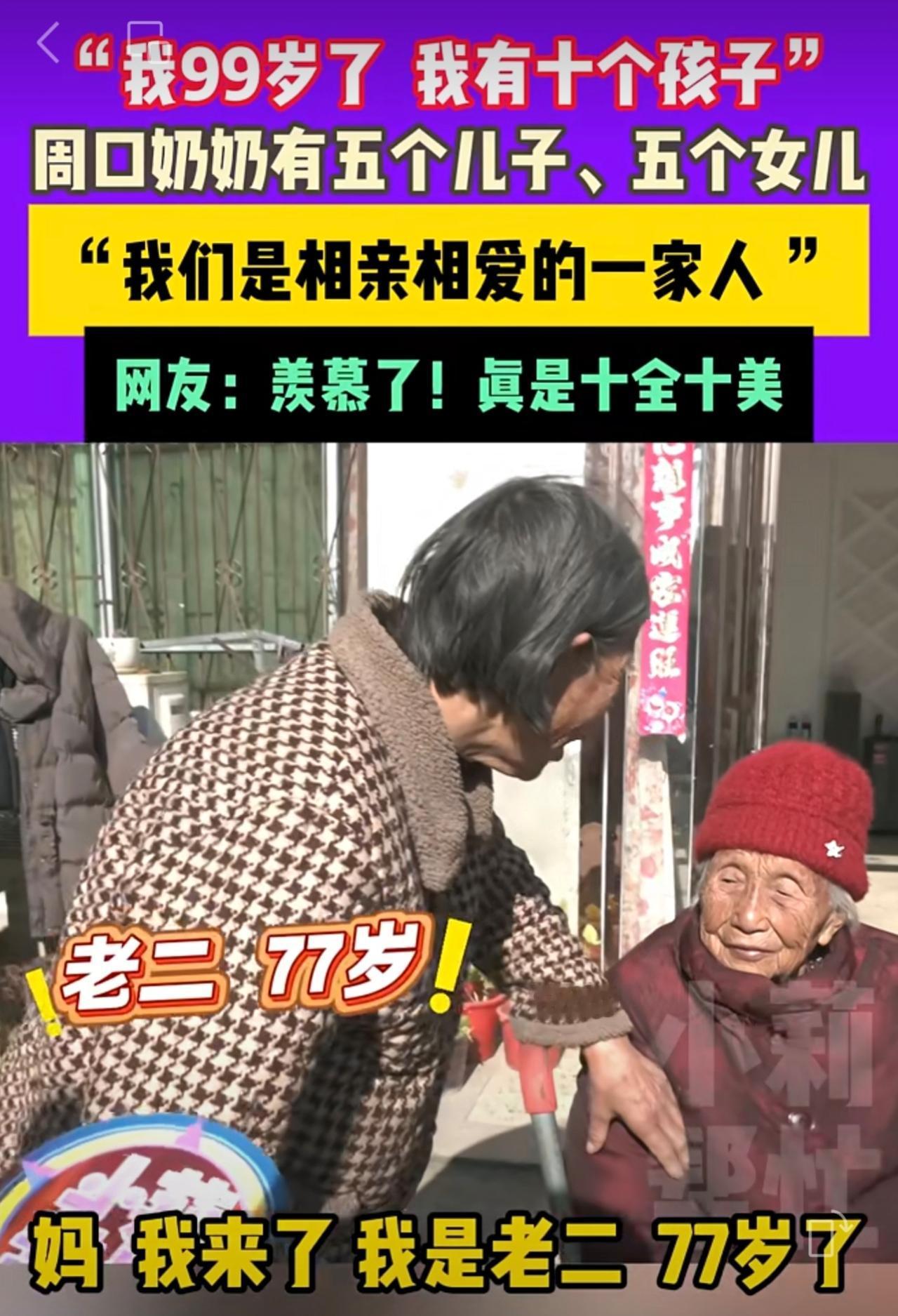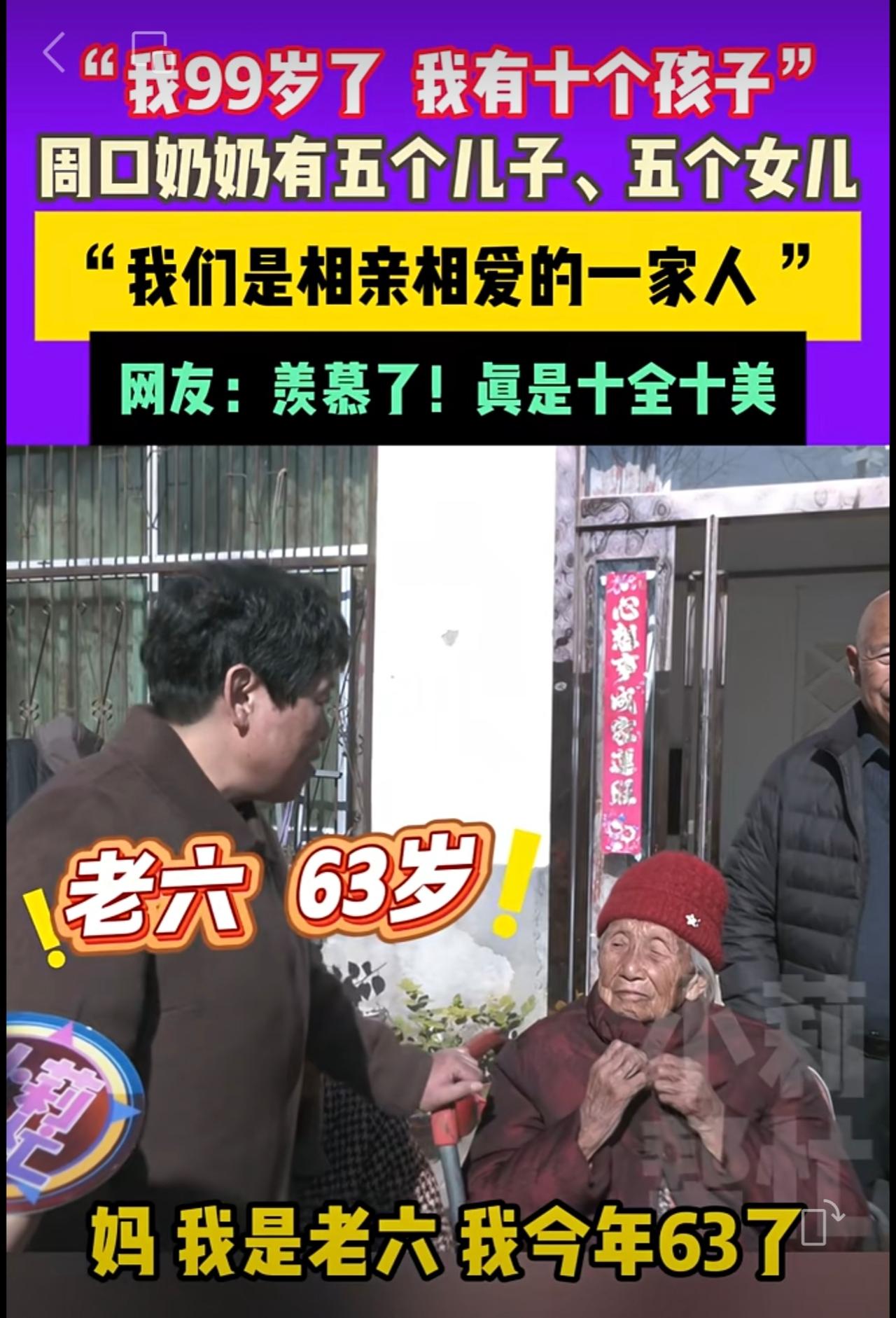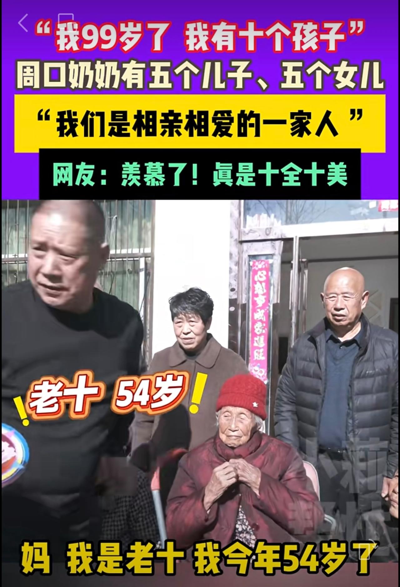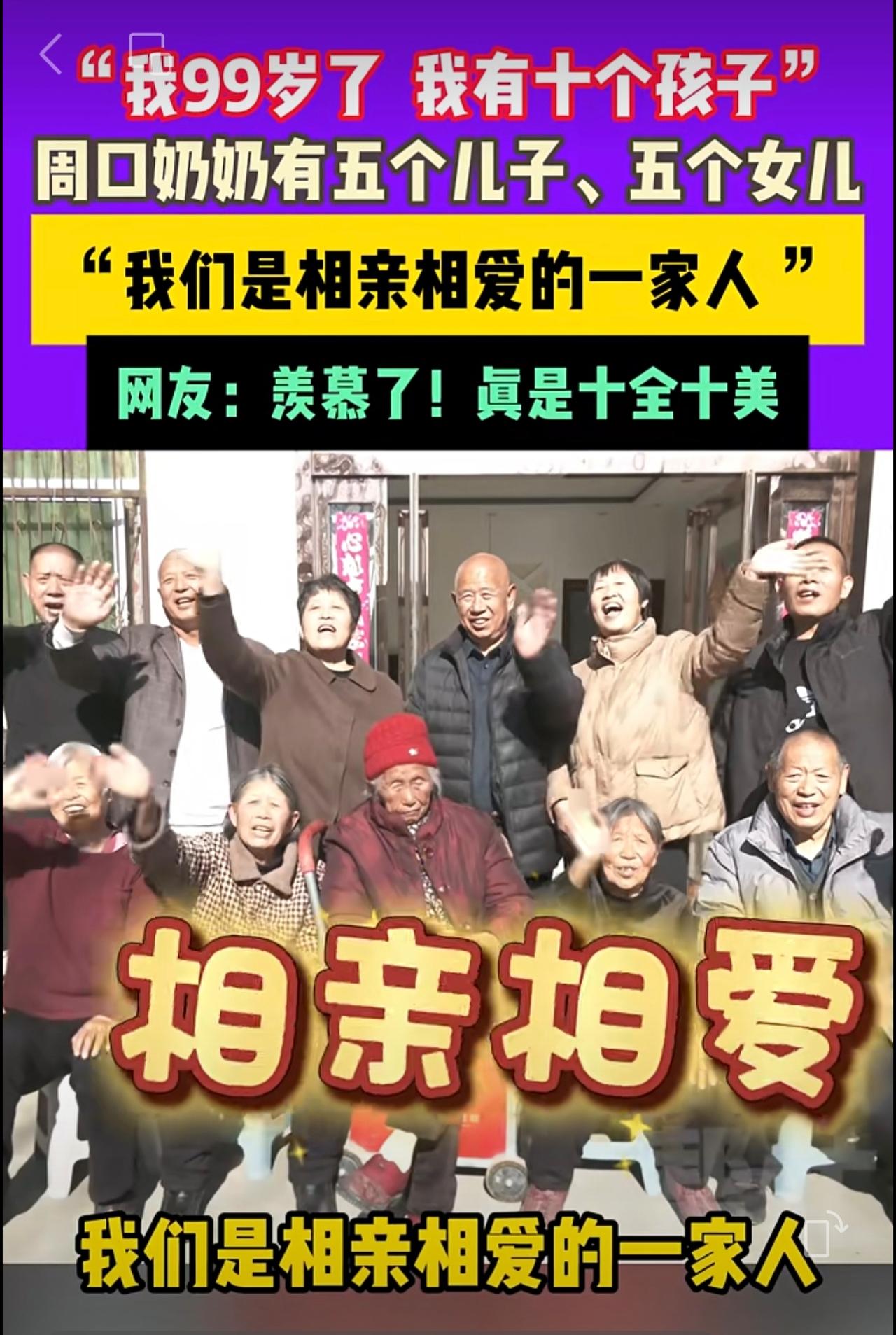 11月21日(发布),周口商水,“我99岁了 我有十个孩子”。周口奶奶有五个儿子、五个女儿。“我们是相亲相爱的一家人 ”。网友:羡慕了!真是十全十美。
