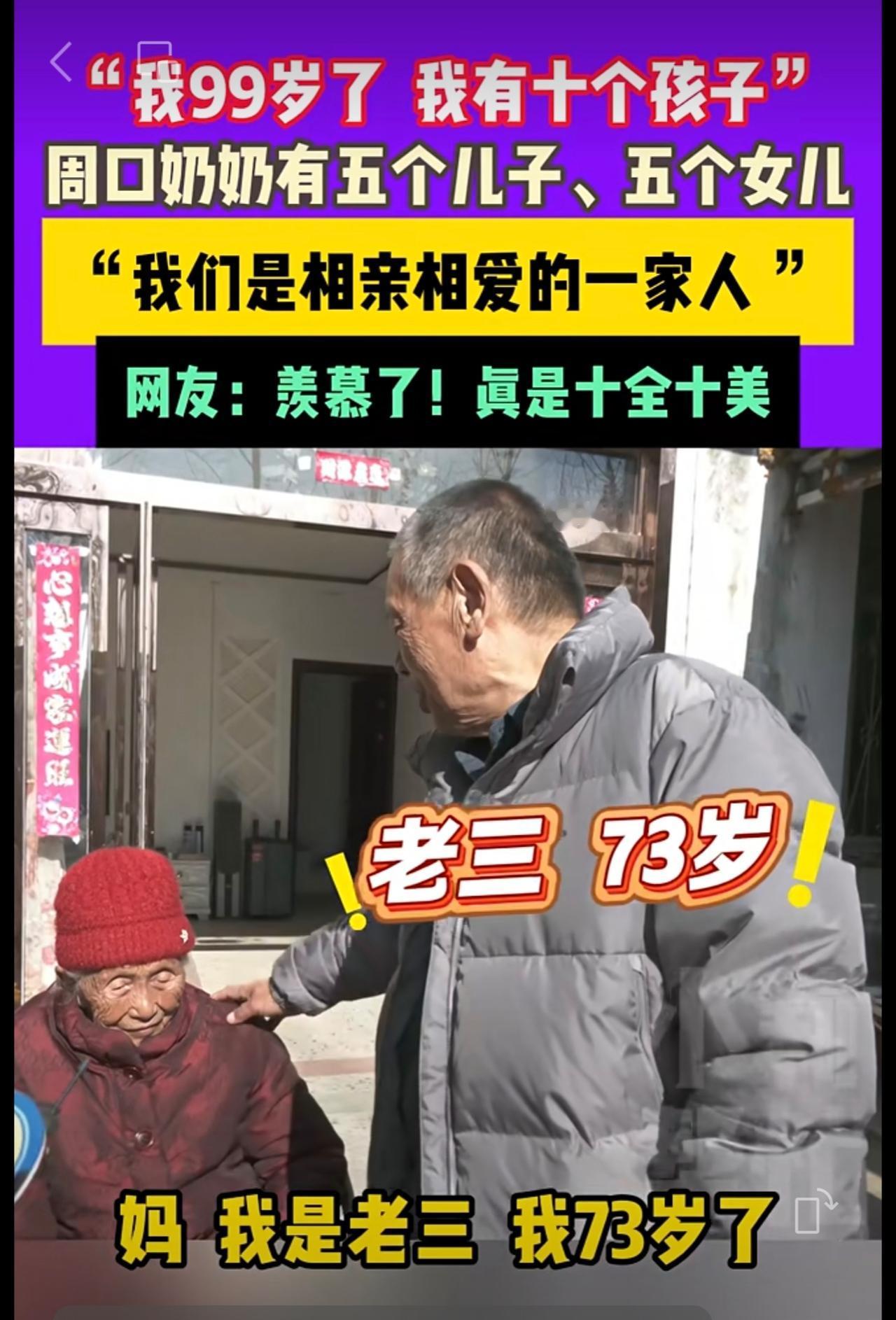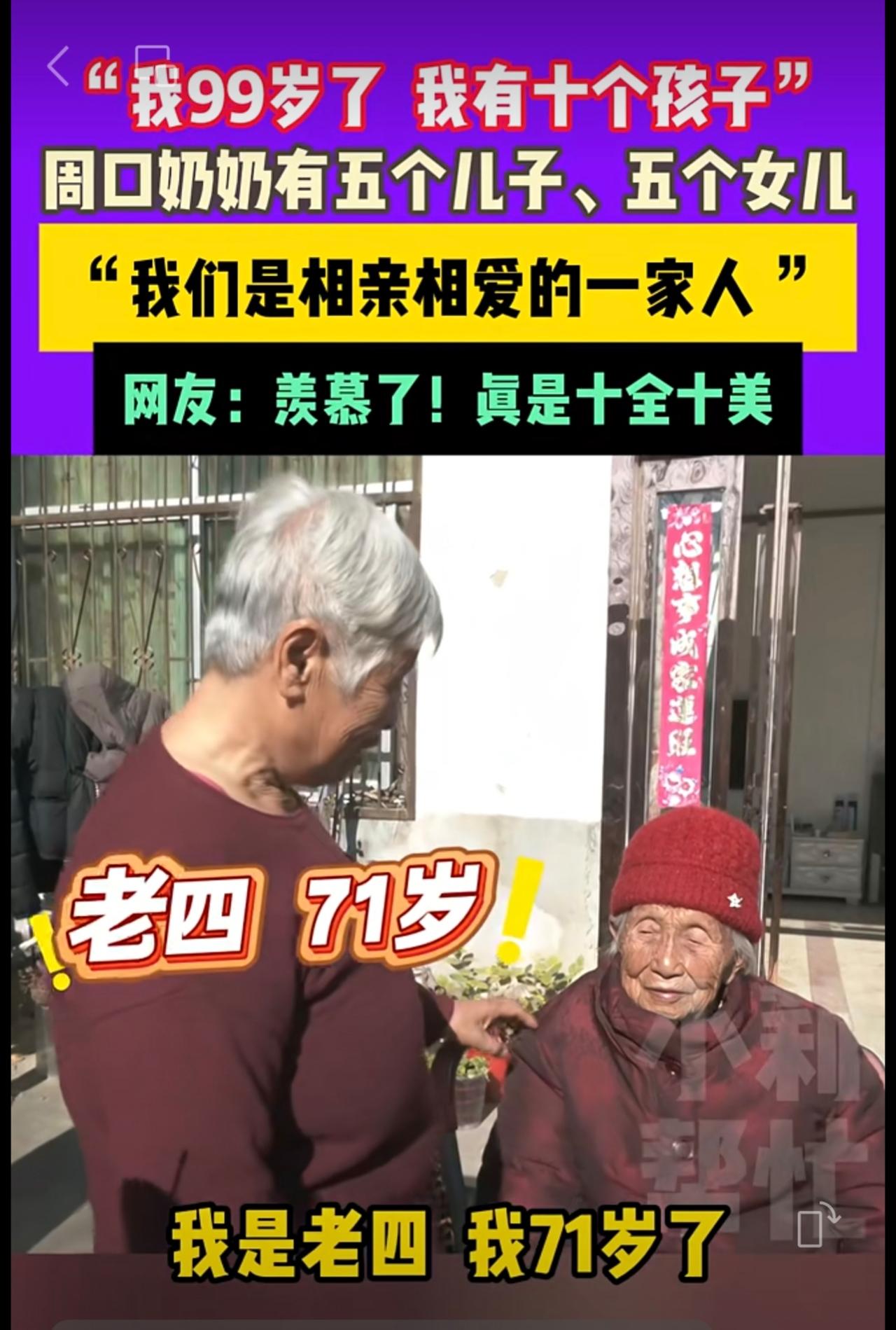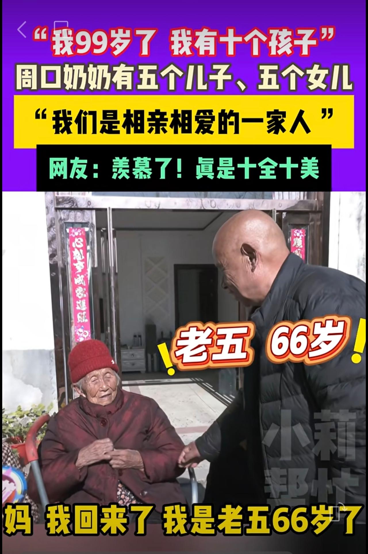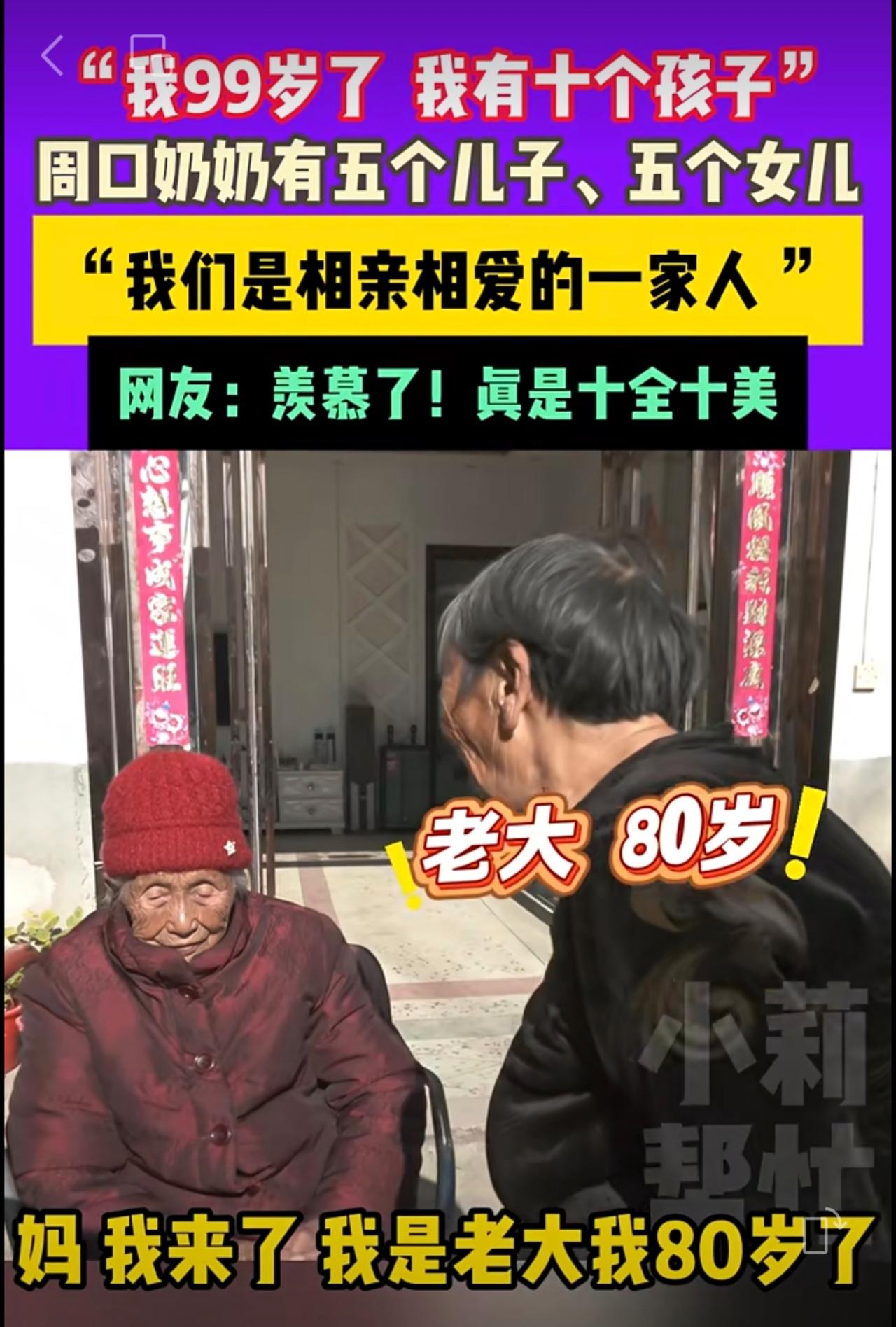 11月21日(发布),周口商水,“我99岁了 我有十个孩子”。周口奶奶有五个儿子、五个女儿。“我们是相亲相爱的一家人 ”。网友:羡慕了!真是十全十美。