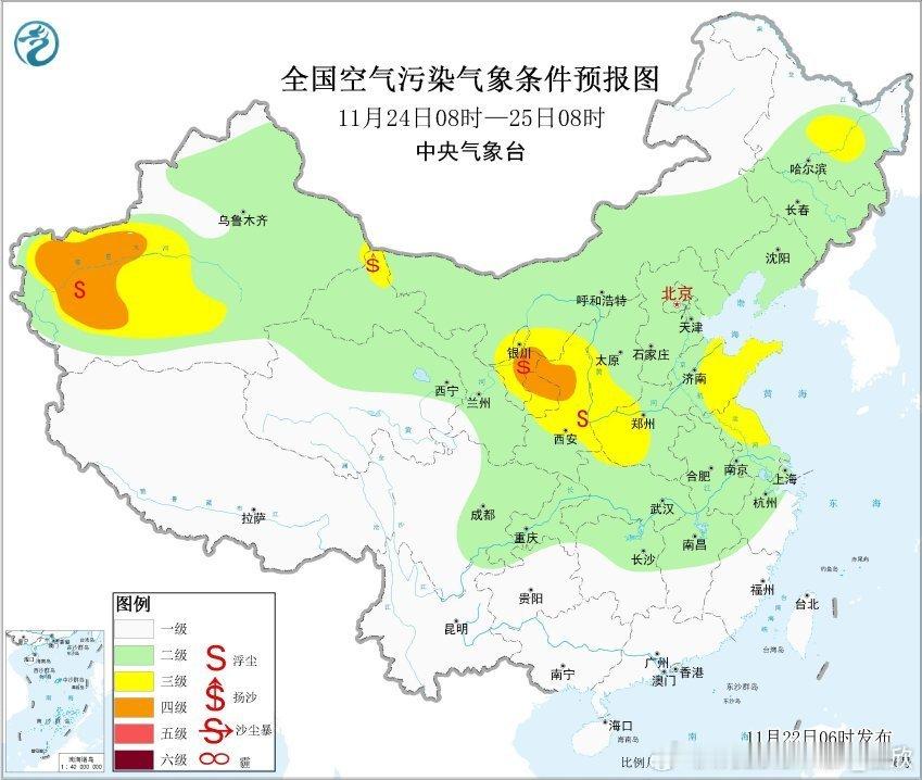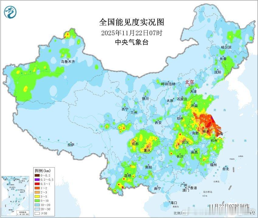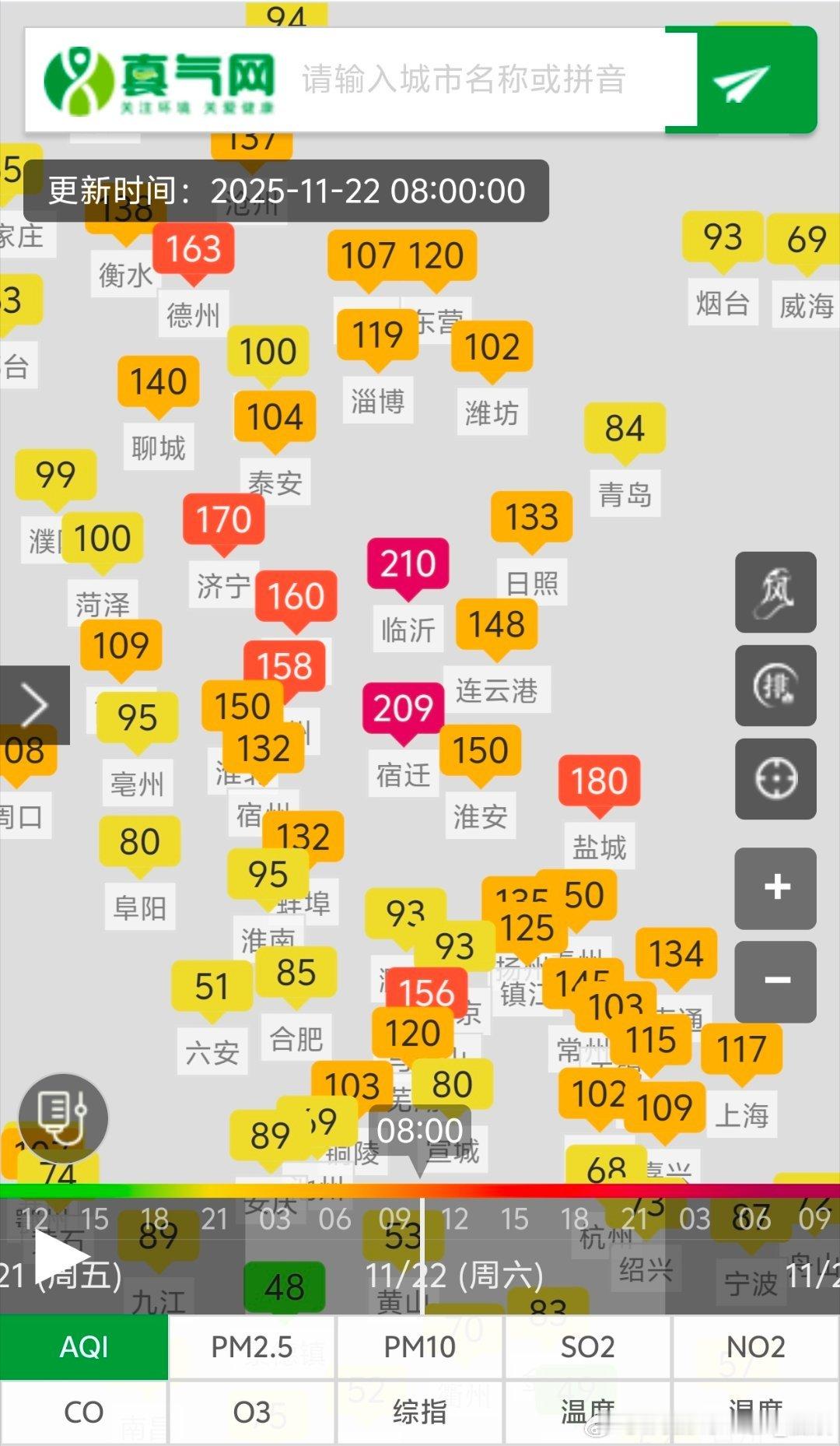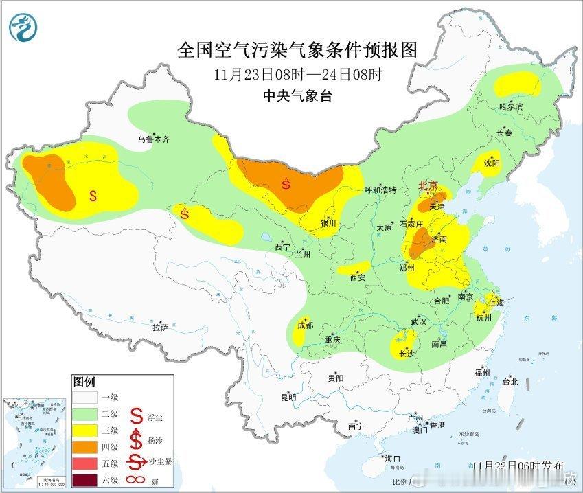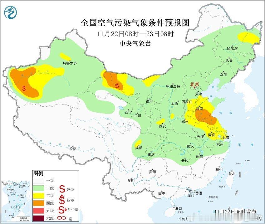 【雾 霾 沙尘】今晨在华东一带出现了雾和霾,江苏安徽等地是雾和霾混杂。江苏射阳和浙江丽水今晨能见度不足200米,出现了强浓雾。安徽滁州出现浓雾。山东安徽江苏等地空气质量还有轻度-中度污染,山东临沂和江苏宿迁出现重污染,对应有霾。今明两天在地面高压后部偏南风推动下,黄淮一带霾可能向北传输到京津冀。后天冷空气东移南下,霾向南传输减弱。另外冷空气逐渐东移过程中,大风可能吹起沙尘,导致新疆南部、内蒙古西部、青海北部、甘肃西部、宁夏、陕西北部等地的部分地区有扬沙或浮尘天气。