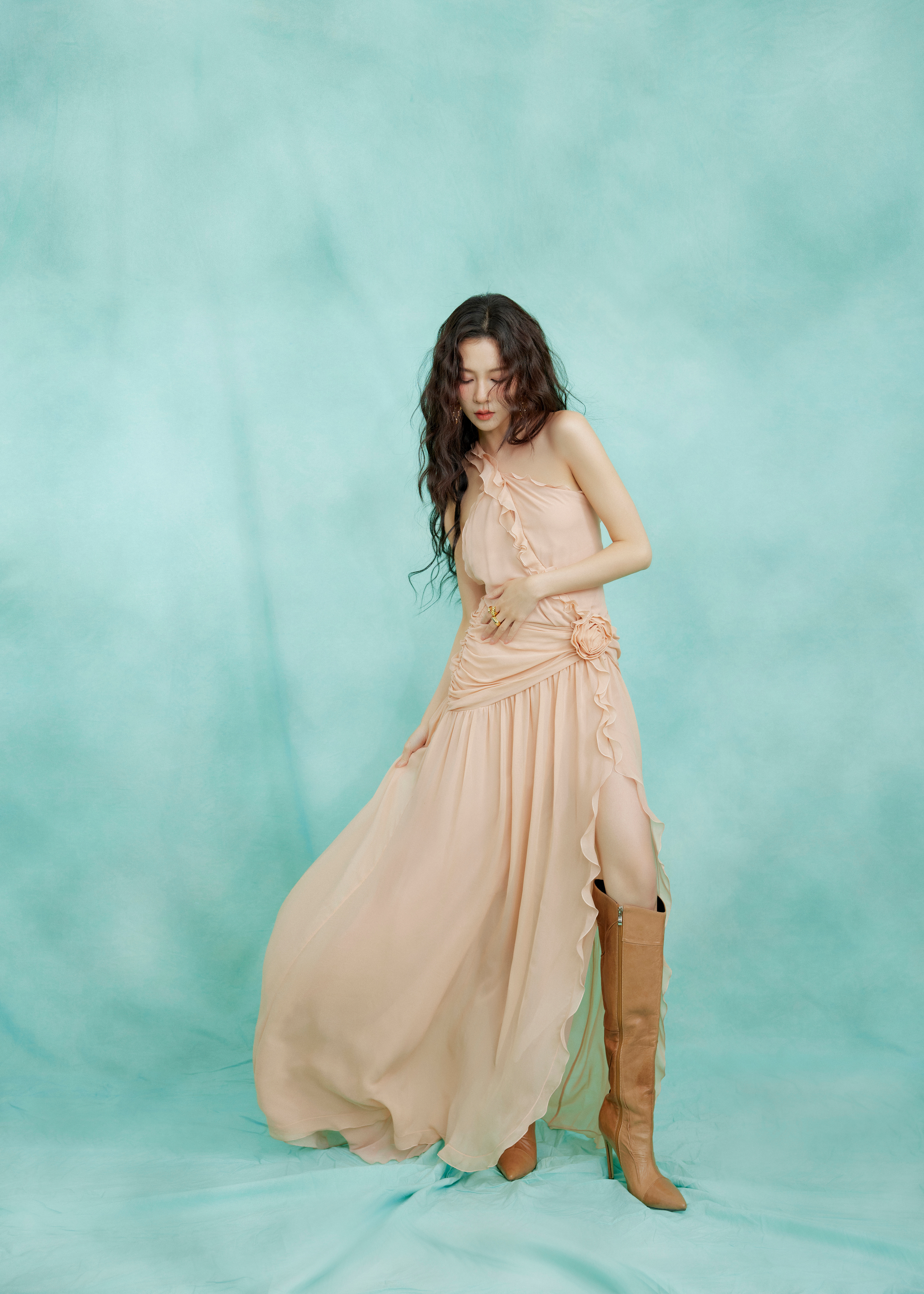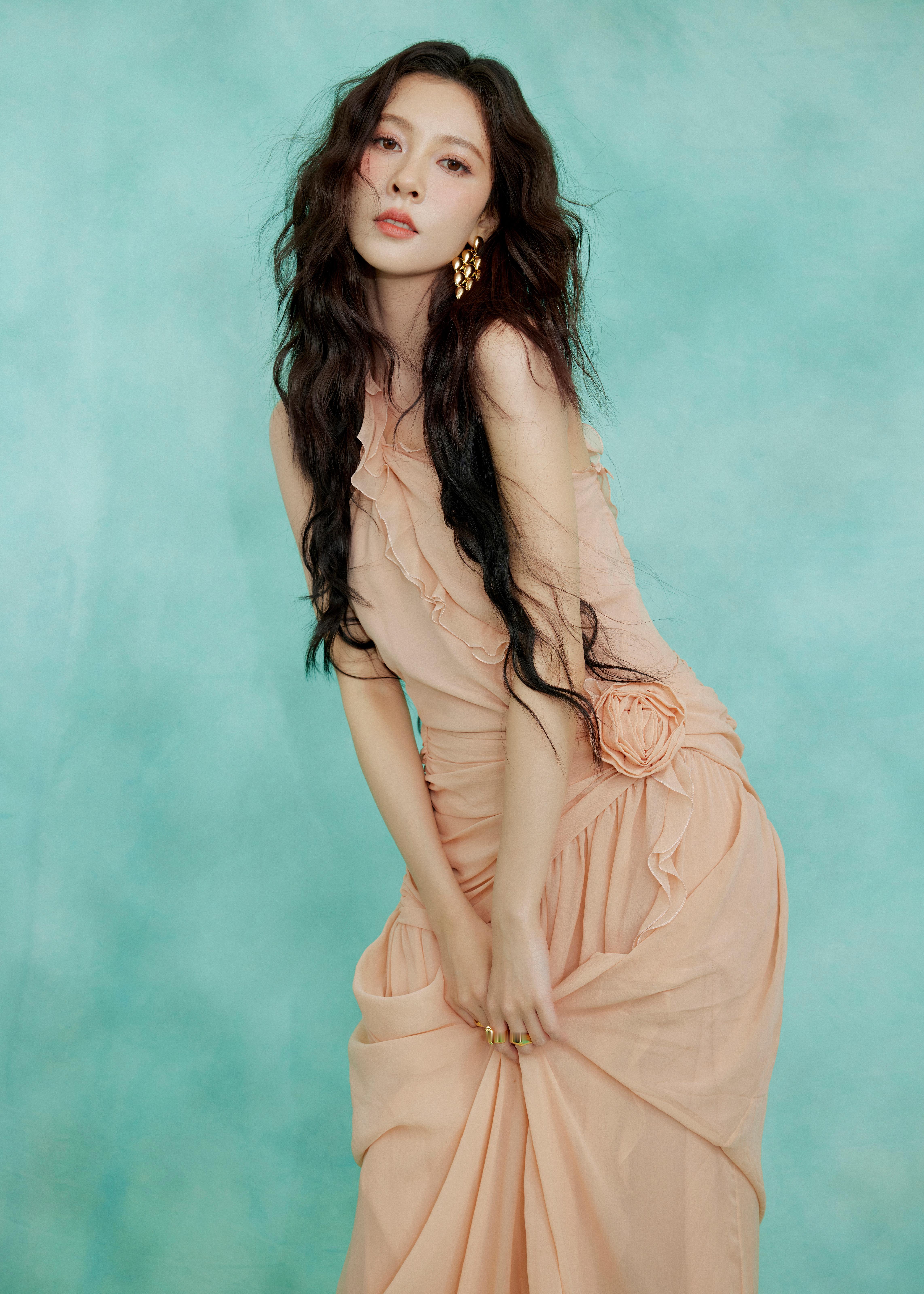 刘亦菲把死亡玫粉穿出了定制款的感觉,这种颜色普通人穿上分分钟黑三度,她居然能穿出