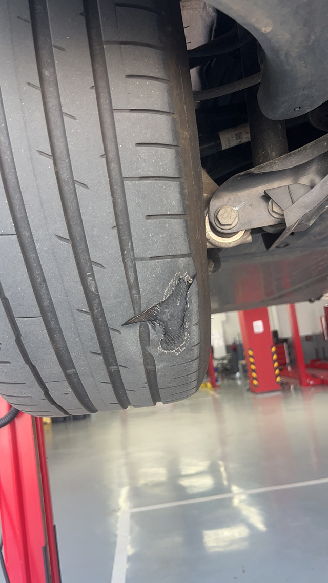 还好发现的及时 最近低速行驶车辆有吧嗒吧嗒声音,开始一点点觉得没啥事,这几天越来越明显就约了去售后看看,后轮胎都掉一大块了,不知道咋整的,这么高温再跑两天估计就爆胎了,好险啊