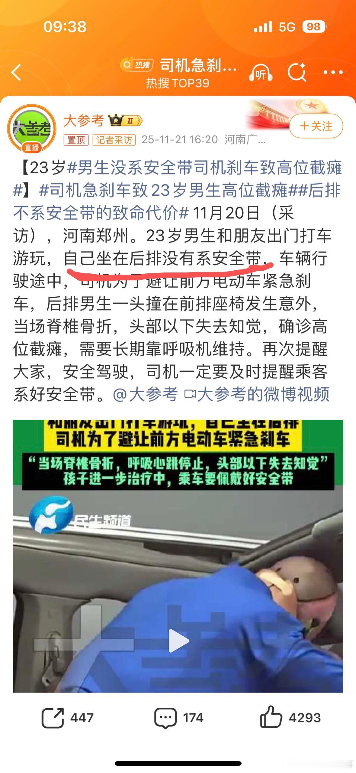 论系安全带的重要性!不管是前排还是后排安全带一定要系好!因为马路上开车的未知数太多了!安全把握在自己手上!