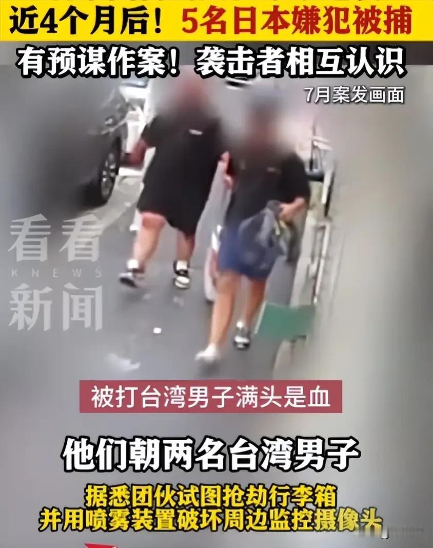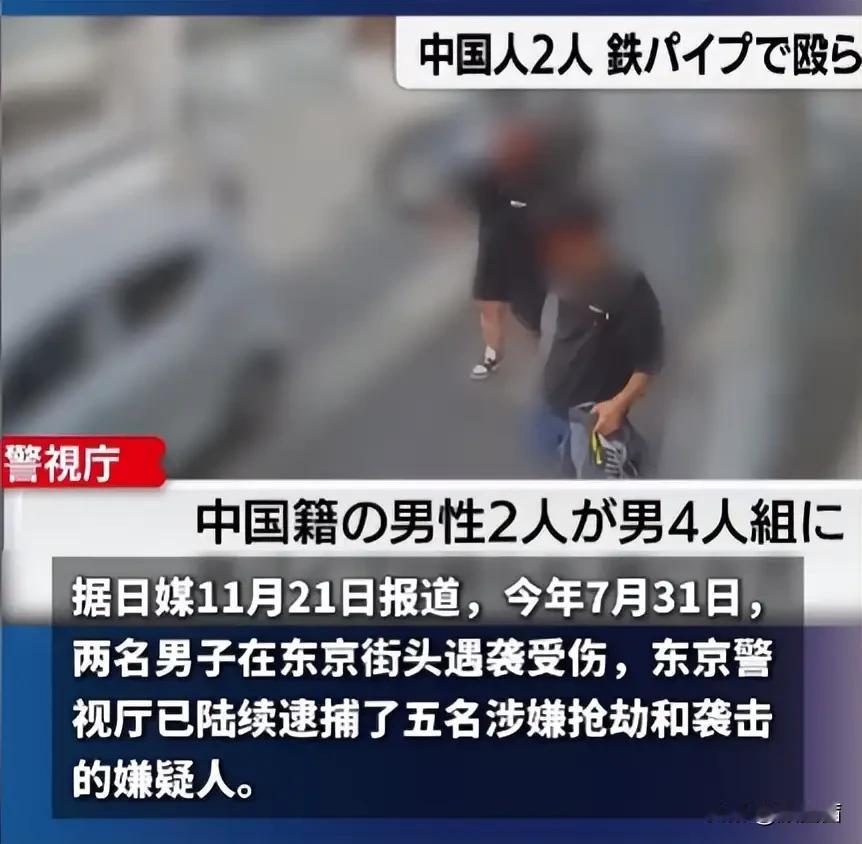 5名歹徒跨省专挑华人下手? 东京街头的暴力袭击案,细节让人愤怒又揪心。 11月21日,日本TBS报道了这起迟来的真相,两名中国同胞在东京街头遭遇有预谋围殴,如今5名嫌疑人已被警方逮捕。 据悉,这伙人年龄多在20岁上下,最小的才19岁,他们特意从大阪驾车数百公里到东京,先破坏监控,再用催泪喷雾袭击受害者面部,接着用铁管疯狂殴打头部和面部,企图抢劫行李箱,最终没能得手便驾车逃离。 更让人不安的是,警方调查确认他们是专挑华人作案。 而就在这起案件细节曝光前几天,11月14日我国外交部和驻日使领馆已发出严重提醒,让中国公民近期避免前往日本,因为当地针对华人的违法犯罪案件多发,安全环境持续恶化。 祖国永远是海外同胞的后盾,已在日的同胞一定要提高警惕,遇到紧急情况及时报警并联系使领馆求助。 东京中国人遭袭