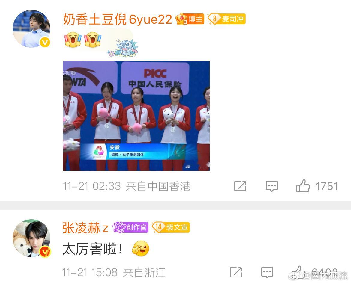 张凌赫回复全运会获奖运动员,优秀的人果然都是相互吸引的!