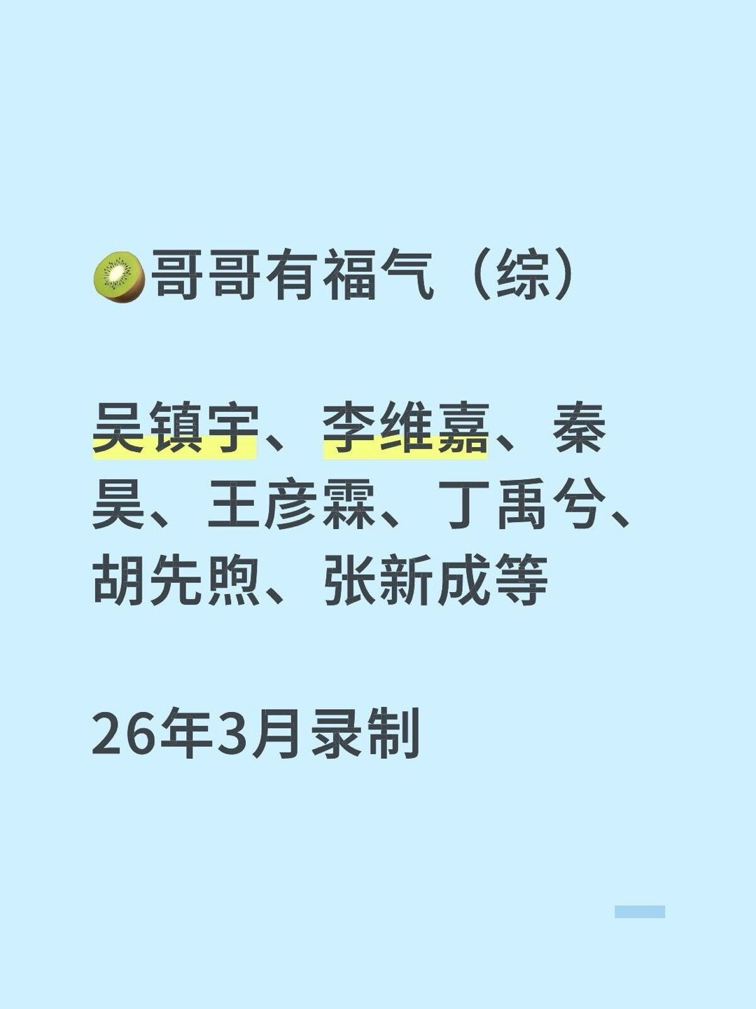 综艺🍉🥝哥哥有福气(综)吴镇宇、李维嘉、秦昊、王彦霖、丁禹兮、胡先煦、张新成等26年3月录制