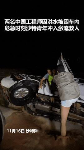 上人民日报了!沙特阿拉伯,两名中国工程师开车途中遭遇洪水车辆不幸侧翻,危机时刻,沙特青年冲入激流救人,拉出一个后,关切的询问是否其他人,在得到肯定的答复后,再次冲入激流中救人……   11月16日的沙特哈伊勒省峡谷,原本寻常的道路被突发的极端天气搅得天翻地覆。   罕见的暴雨倾泻而下,短时间内汇聚成凶猛的山洪,浑浊的水流裹挟着杂物,以不可阻挡的势头冲刷着峡谷间的通路。   两名中国工程师正驾车执行光伏项目任务,车辆在湍急的洪水中突然失去控制,重重侧翻后一半车身浸在水里,随时都有被洪水卷走的危险。   变形的车门被水流死死压住,无论两人如何努力都无法打开,只能在摇晃的车厢里焦急呼救,绝望感随着不断上涨的水位逐渐蔓延。   就在这生死攸关的时刻,三辆汽车相继停下,三名沙特青年循着呼救声赶到现场。   他们没有丝毫犹豫,也来不及多想自身安危,立刻投入到救援中。   其中一人当场脱掉长裤,不顾齐胸深的洪水带来的巨大冲击力,一步步艰难地向侧翻的车辆挪去。   另外两人则在岸边迅速找到安全绳,一端牢牢固定在坚固的物体上,另一端递向水中的同伴,形成一道简易却可靠的安全防线。   面对变形的车门,青年们默契配合,有人在水中奋力撬门,有人在岸边拉紧绳索提供支撑,凭借着一股韧劲,终于将紧紧闭合的车门撬开一道缝隙。   救援过程中,青年们始终牵挂着车内人员的安危。   当第一名工程师被小心翼翼地从车内拽出,护送到岸边安全地带后,他们没有片刻停歇,立刻转身询问是否还有其他人被困。   在得到肯定的答复后,其中一名青年再次毅然跳入湍急的洪流,与同伴合力将第二名工程师成功救出。   这种不顾自身安危、反复确认被困者数量的举动,正是善意最直接的体现,没有丝毫犹豫,也没有任何迟疑,只想着尽快让所有被困者脱离险境。   整个救援过程中,青年们用简单的英语和手势安抚着工程师的情绪,用行动传递着可靠的信号。   两名工程师脱离险境后,仍心有余悸,他们对着三名青年连连表达感谢。   而青年们只是温和回应,随后主动提出将两人送往附近的安全点。   一路上,他们还反复叮嘱工程师们注意安全,直到确认两人彻底脱离危险,才放心离开。   这场突发的险情,让身处异国他乡的工程师们感受到了跨越国界的温暖,原本只是工作之地的沙特,在这一刻变得格外亲切。   事件发生后,中国驻沙特大使馆很快得知了这三位青年的义举,专门对他们表示了诚挚的致谢,称赞他们用实际行动诠释了“患难见真情”的深刻内涵。   这段惊险又温暖的救援视频被传到网上后,迅速引发了全网热议。   网友们纷纷为这三位沙特青年点赞,有人称他们是“真正的国际勇士”,有人感慨“关键时刻挺身而出的情谊最为珍贵”。   来自不同国家的网友在评论区留言,分享着对这份跨国善意的感动。   三名沙特青年的救援行为,没有惊天动地的誓言,也没有刻意为之的渲染,却在危急时刻展现了最纯粹的勇敢与善良。   他们用默契的配合、果断的行动,为两名中国工程师筑起了一道生命防线。   而这场发生在激流中的救援,也让人们真切感受到,善良从来都不分国界,它是人类共通的语言,能够跨越语言的障碍、文化的差异,在危难时刻搭建起信任与互助的桥梁。   在这场突如其来的自然灾害面前,个体的力量或许渺小,但人与人之间的守望相助,却能迸发出无穷的温暖与力量。   今天的分享到这里就结束了,大家对此事有何看法,欢迎在评论区留言和讨论,感兴趣的可以点击头像加关注,我将每日更新优质内容,我们下期见。