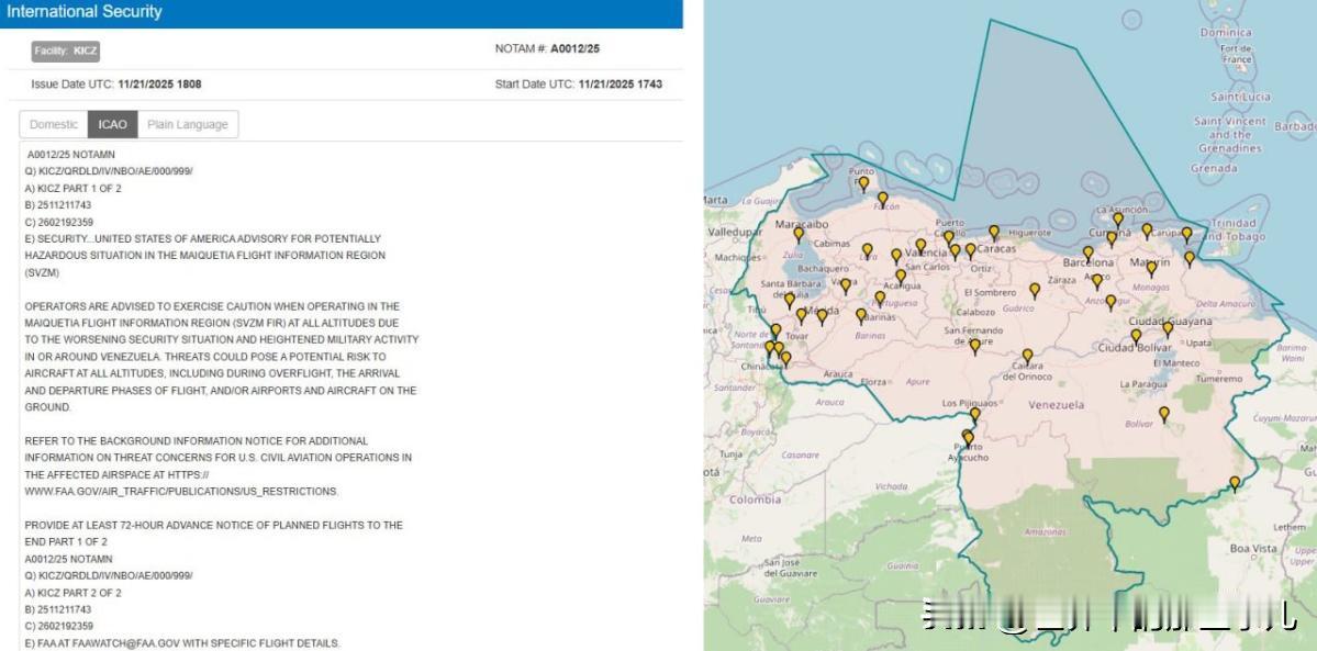 美国发布委内瑞拉空域航行警告!开始封锁委内瑞拉领空了吗?局势越发紧张! 11月
