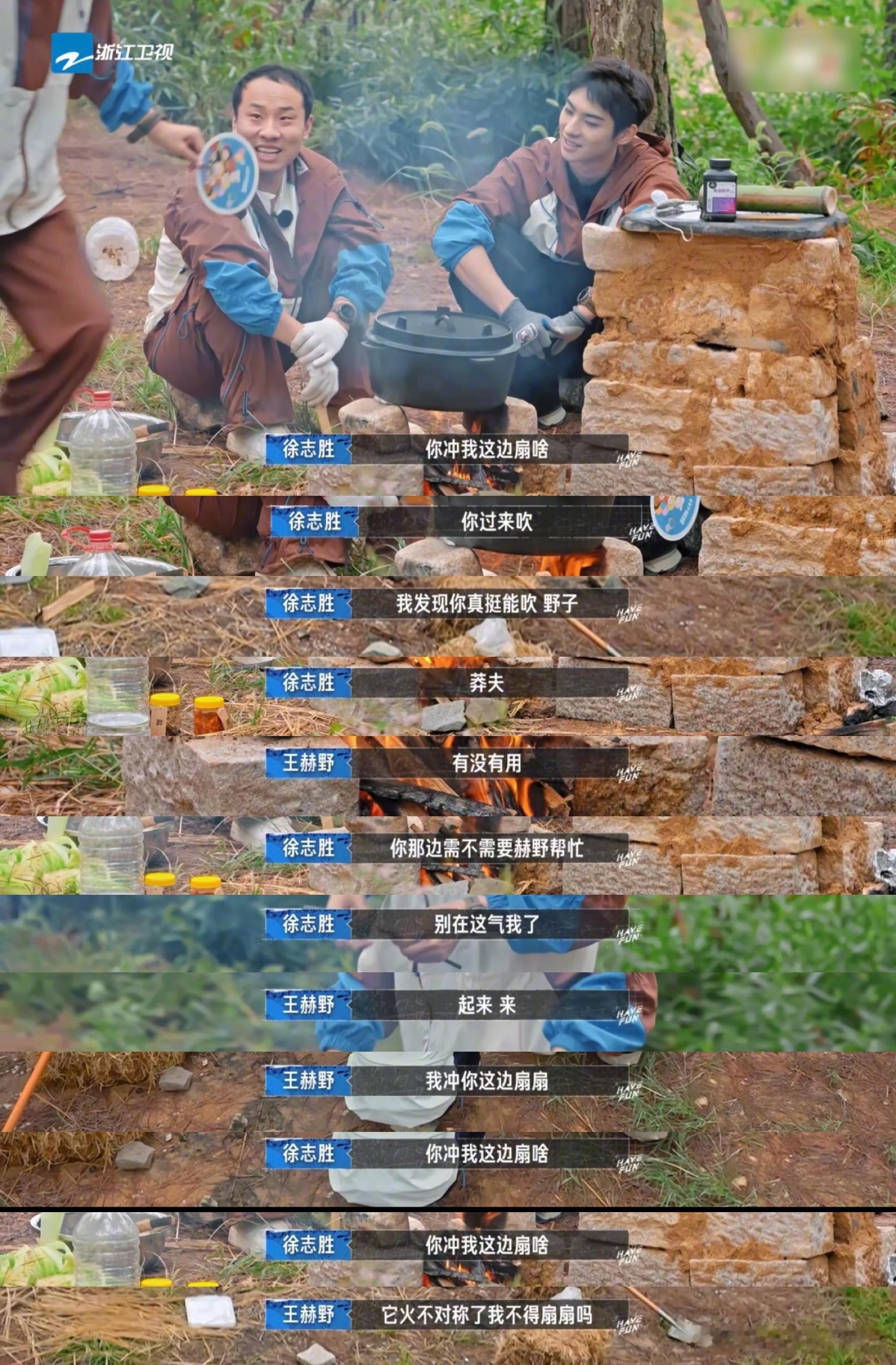 这对组合太会整活了!生火时赫野用力过猛遭吐槽,转头就用扇火反击徐志胜,火吹向对方的画面配上悬疑BGM,瞬间变成“叔舅争执现场”。互怼中全是笑点,离开他们真的会剧荒,太上头了!