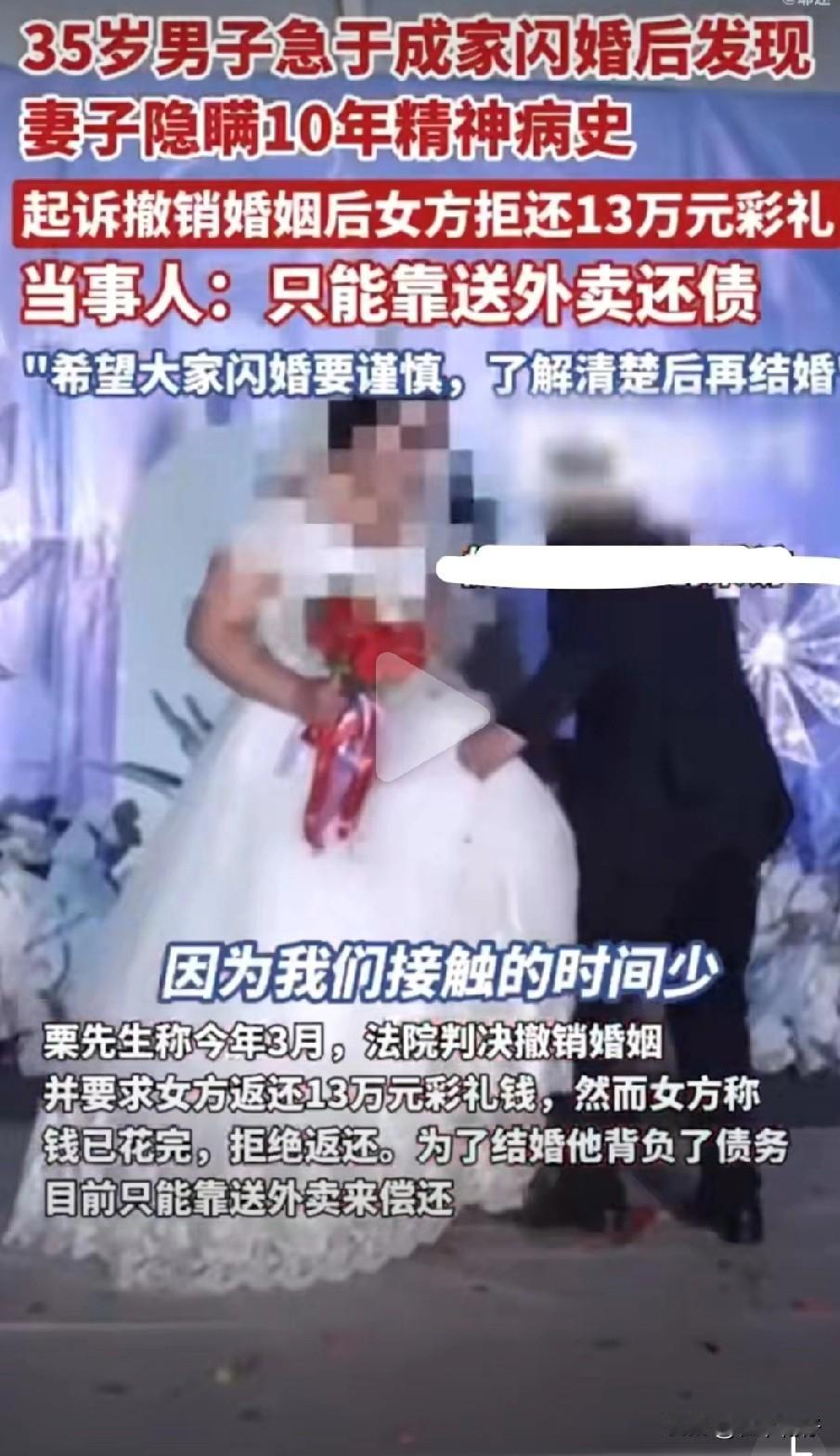 结婚7年共同生活仅1年,男方离婚才知妻子婚前患精神疾病!法院这样判 河北省阳原一对夫妻结婚七年,共同生活仅一年有余,其余时间里,妻子总是以各种借口回娘家居住。直到丈夫起诉离婚,才惊人地发现——妻子婚前就患有精神疾病,需要长期服药,而那些频繁回娘家的日子,正是她病情复发需要治疗的时候。 法院最终判决双方离婚,男方放弃追索彩礼,并主动补偿女方1万元医疗费。法院的最终判决和调解结果,实际上是法律框架下一种“无奈但合理”的平衡: 1. 判决离婚:这是解决当前婚姻状态的唯一合法途径。 2. 男方放弃追索彩礼:这是他认清法律现实后的理性选择。 3. 补偿女方1万医疗费:这个举动非常关键,它可能出于以下几种考虑: · 人道主义关怀:女方毕竟是病人,需要治疗,男方出于同情给予补偿。 · 快速解决纠纷:用一点经济补偿换取女方同意离婚,避免漫长的一审、二审。 · 法官的调解。 婚姻选择需谨慎,婚前了解要透彻,权利行使要及时。