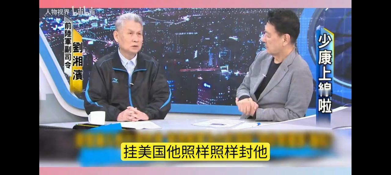 少康战情室总能请到有分量的人物,比如前台军副司令刘湘滨。 少康:大陆封锁台湾怎么办? 刘,没办法。 少康:挂美国国旗, 刘,照样没用。 少康:日本自卫队能帮忙么? 刘,不能。 少康:为什么? 刘,大陆可以直接消灭。 少康:那台湾怎么办? 刘,尽量去谈判争取一个比较好的待遇。 少康:休息一下换个话题吧。