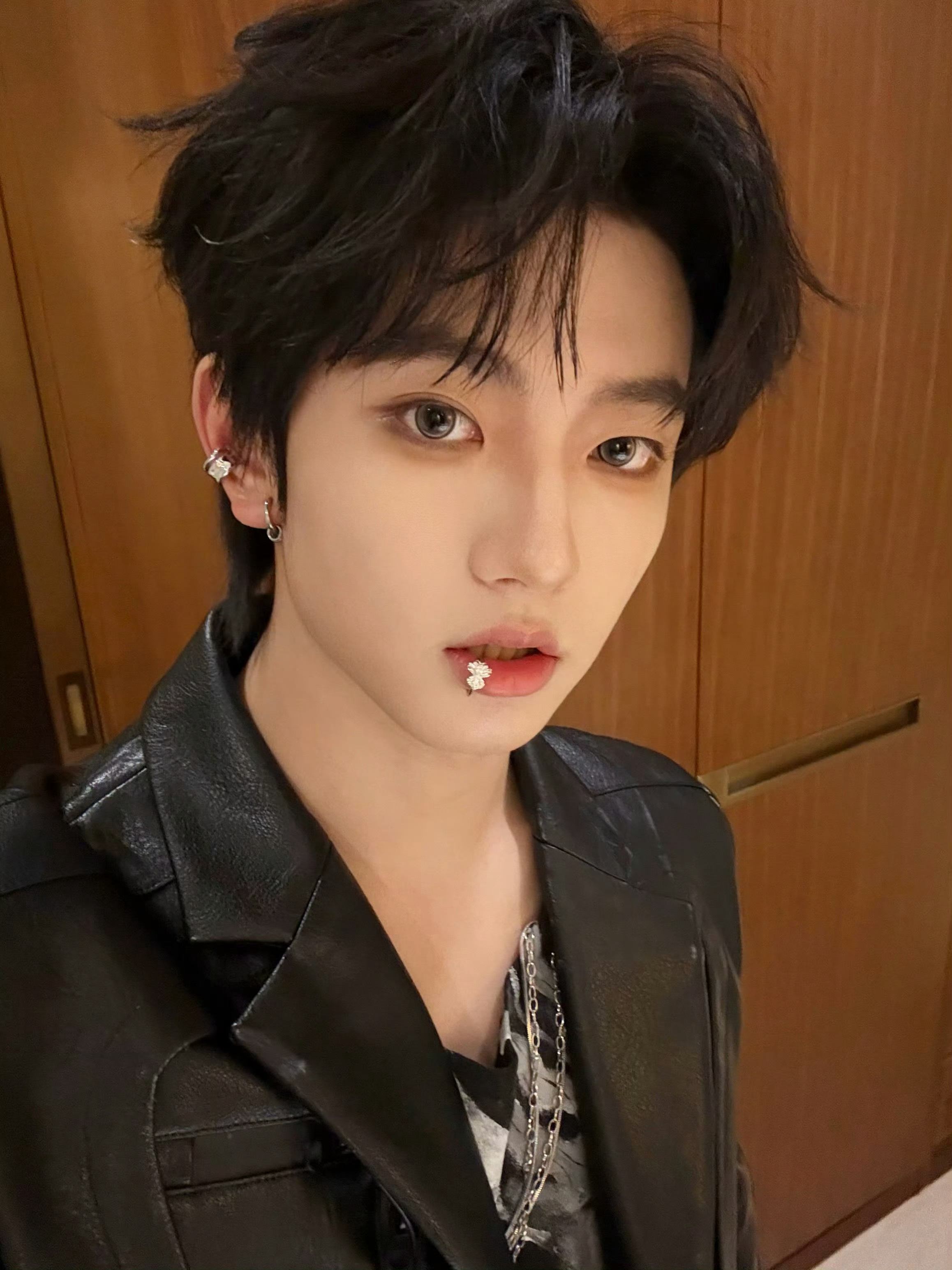黄铉辰西装新闻图黄铉辰新闻发布会生图[彩虹屁]黑发西装露额头造型好周正!帅气暴击