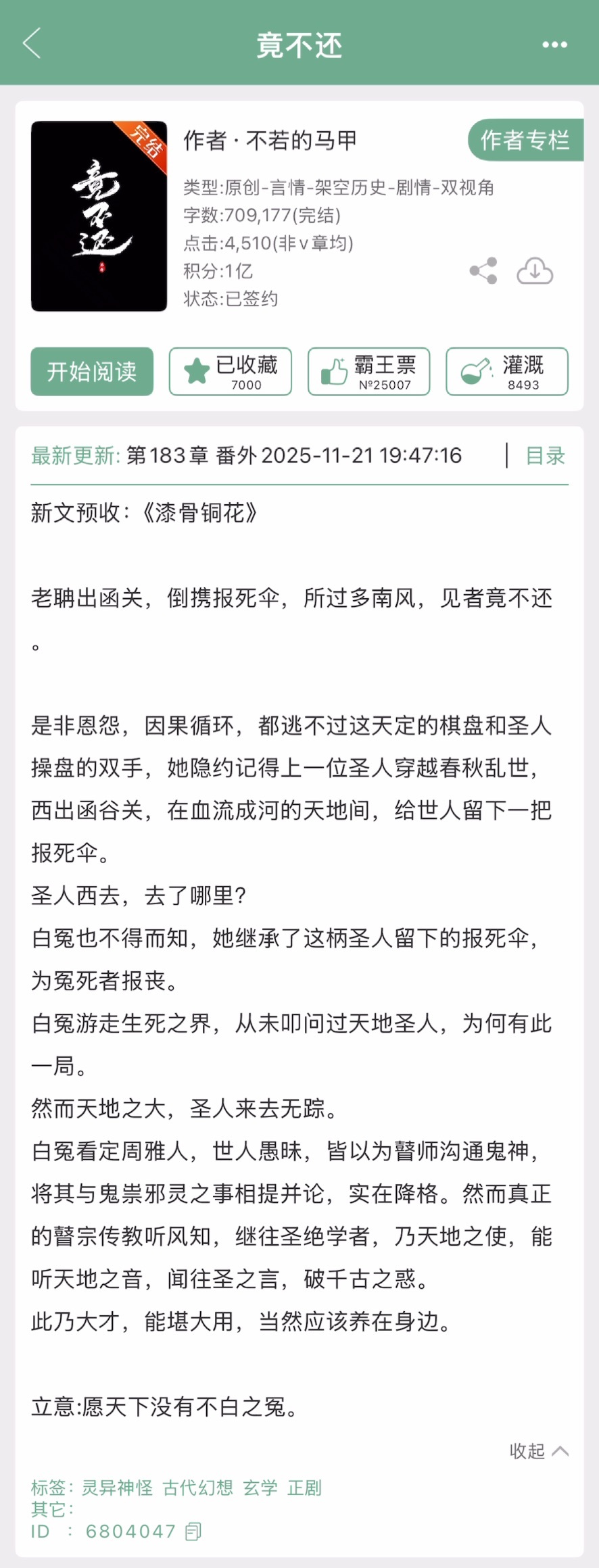 不若的《竟不还》完结啦!灵异志怪➕单元文,眼盲青衣客x清冷报丧鬼