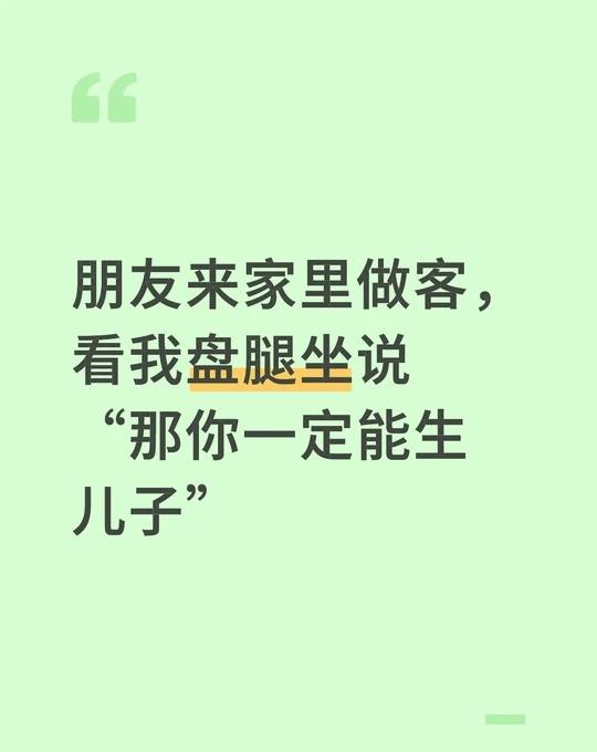 我说,那我祝你十个儿子 事情是这样的。我平时喜欢盘腿坐,而家里的椅子有扶手,朋友看到我盘着腿就说自己不能这么坐,因为腿粗。我说这个主要是髋关节,髋关节灵活就可以。她一直说自己腿粗,我说髋关节。然后她说“好好好那你一定可以生个儿子” 我当时立刻怼回去”你生十个吧,祝你生十个” 她说你这个祝福好恶毒,我说不是你先的吗。 虽然但是,我还是超级后悔当时说的语气太温和了像在开玩笑[完啦R][完啦R][完啦R] 想了好几天还是发出来了因为越想越不爽。 精神状态领先一百年