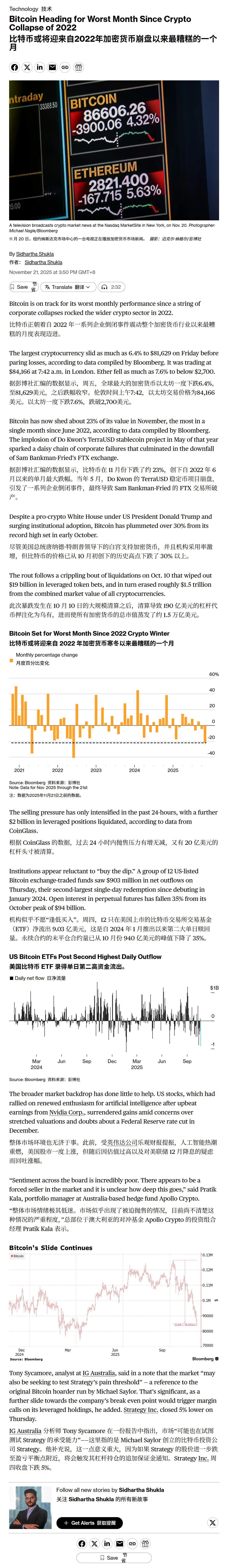 比特或将迎来自2022年加密货币崩盘以来最糟糕的一个月
