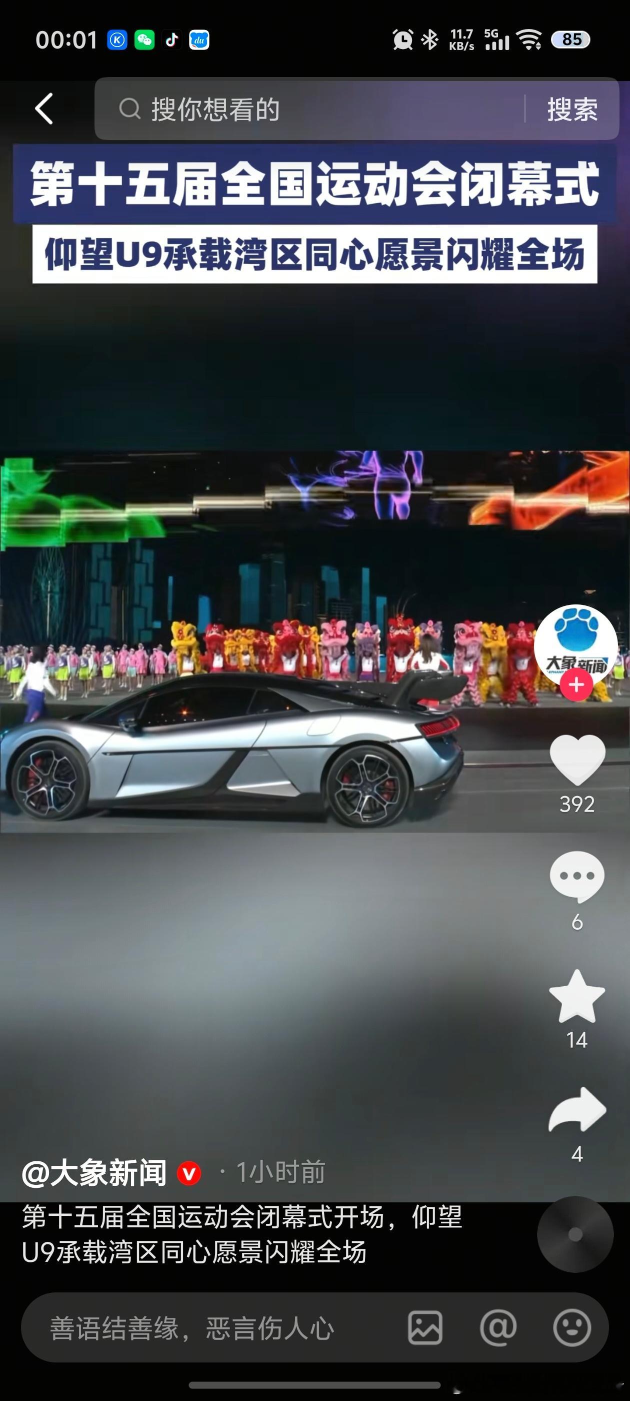 第十五届全运会闭幕式,我居然发现了三台仰望U9,还都是带着大尾翼的,这排面直接拉