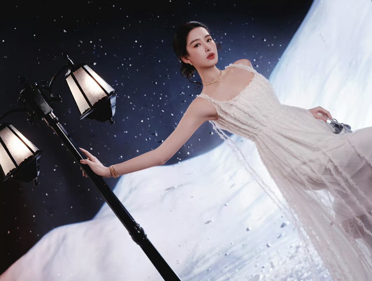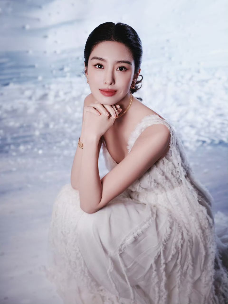刘亦菲把死亡玫粉穿出了定制款的感觉,这种颜色普通人穿上分分钟黑三度,她居然能穿出