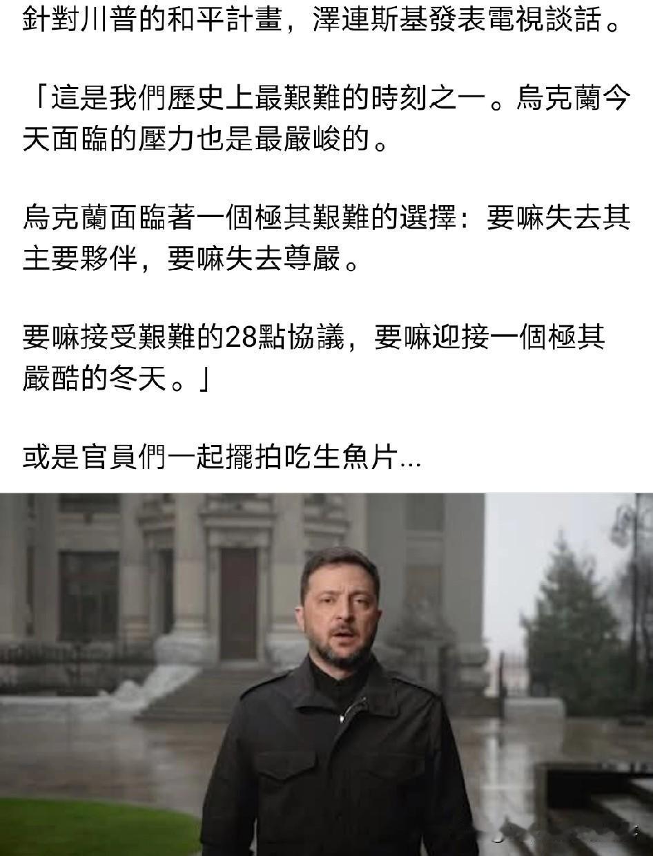 川普要求乌克兰下周四前接受“割地裁军”的28点和平计划! 川普是真的不想管一点乌克兰了!川普提出的28点和平计划,比原来乌克兰和俄罗斯在土耳其伊斯坦布尔的谈判协议还操,打了三年多还不如以前的和平方案,我不知道乌粉怎么替乌克兰辩解。欧洲真有本事在没有美国支持的情况下援助乌克兰吗? 这28点和平计划对乌克兰是一种赤裸裸的羞辱,原来是为了进北约。结果最后结局是永不能进北约,丢失三分之一的人口,五分之一的土地,整个国家都打烂了,年轻人几乎打掉一代人。换回什么?