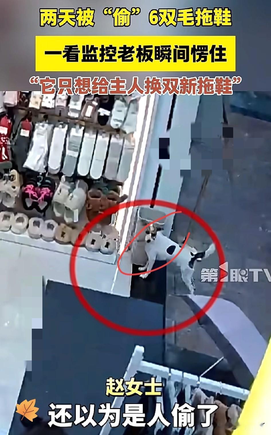 重庆,一家店铺两天丢了6双毛拖鞋,老板娘还以为是有人顺手牵羊,气得查监控,结果看到画面直接被气笑,没想到竟是一只小狗 这狗子简直是惯犯级操作!趁店里没人就溜进来,精准锁定货架上的毛拖鞋,叼起就撒腿狂奔,两天连“偷”6双,动作麻利得像练过! 老板娘本来越想越气,结果看清监控里那圆滚滚的小身影,满肚子火气瞬间被萌化,只剩哭笑不得! 隔壁店主得知后立马上门道歉,还主动要赔钱,老板娘却大气摆手:“不用不用!”比起被人偷的糟心,被小狗调皮“光顾”反而更踏实,邻里之间哪用这么较真! 其实生活里的小插曲不可怕,最怕揪着小事不放的戾气,像这两位店主这样多份包容,再闹心的意外也能变成暖心的邻里趣闻!