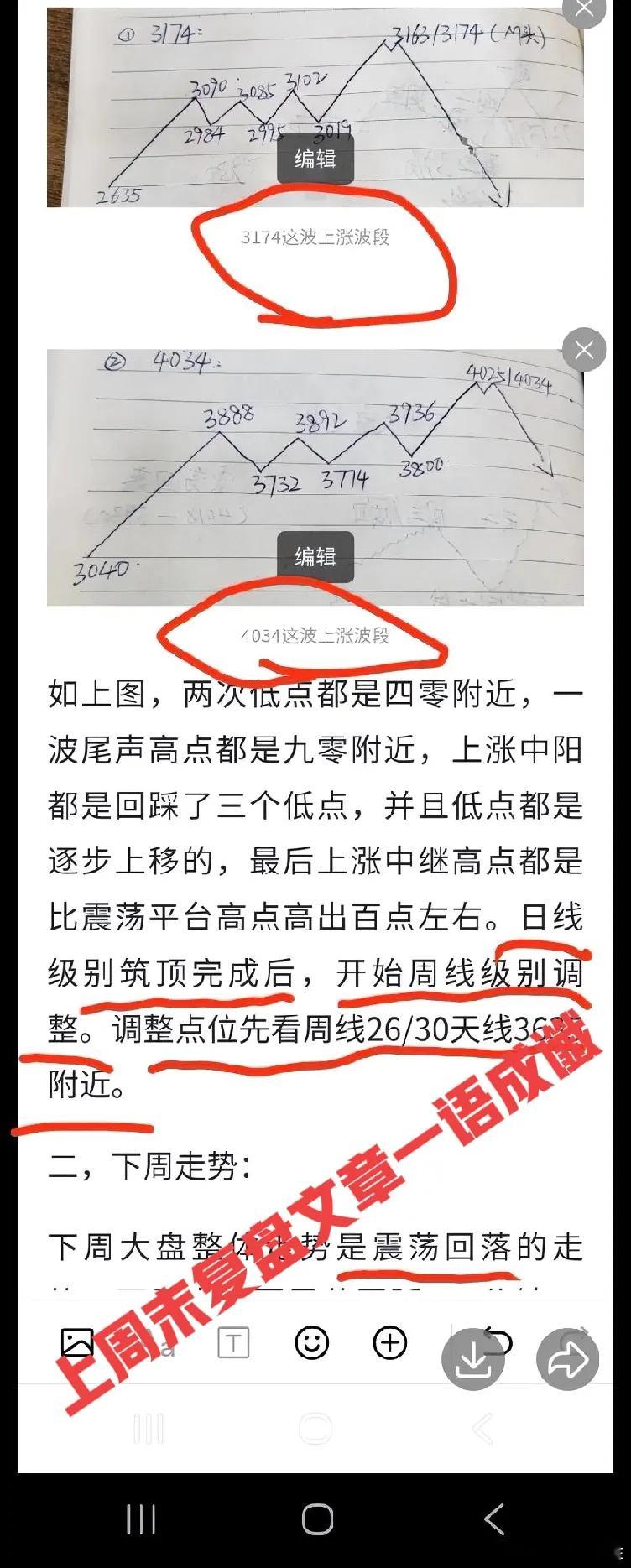 周六文章:下周大盘走势及板块解读 从本周大盘走势来看,本周大盘周一和周二连续调整如期探底30分钟265天线,周三开始开始超跌反弹,周四受证券利好影响,高开冲高30分钟30天线进行诱多,周五低开低走直接跌破13周均线。周五收周线叠加交割日,周线如期收出低开低走的明显阴线。那么,下周大盘怎么走? 从昨晚外围走势来看,美股三大指数悉数收涨涨幅接近1%,其中,与创业板和科创板走势息息相关的中概股涨幅接近1%,a50期货收涨0.71%,恒生期货收涨1.22%。所以,下周一大盘大概率高开,整周维持冲高回落震荡收阴的走势。 从市场表现来看,大盘震荡筑顶阶段,科创板和以通信为主的大科技率先调整,然后,创业板和以新能源汽车为主的题材在上周进行了加入冲顶涨停潮后,开始进行周线级别调整。其次,以银行红利为代表的蓝筹进行最后的补涨,构筑日线级别顶部背离后,开始了周线级别调整。4034的这波日线级别顶部背离的构筑方式与3174那波有异曲同工之妙,上周末复盘文章已精讲,在此不再赘述。 下周大盘怎么走?上周大盘如期震荡回落,周线绿十字星后如期收出明显阴线,周线级别调整一触即发,周线macd拒绝金叉且绿柱明显放大,调整先看30周均线附近3653附近。具体走势明天文章分享,敬请期待。 个人观点,与君交流,下周大盘是探底回升还是冲高回落?欢迎评论区留言讨论。昨天是兔兔icon的生日,适合十三年再次在家人的陪伴下度过了一个难忘的生日,感谢大家的祝福,兔兔满满的感动,祝大家周末愉快。