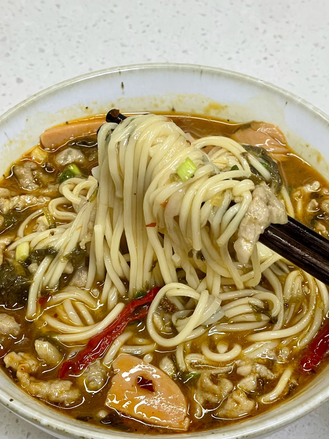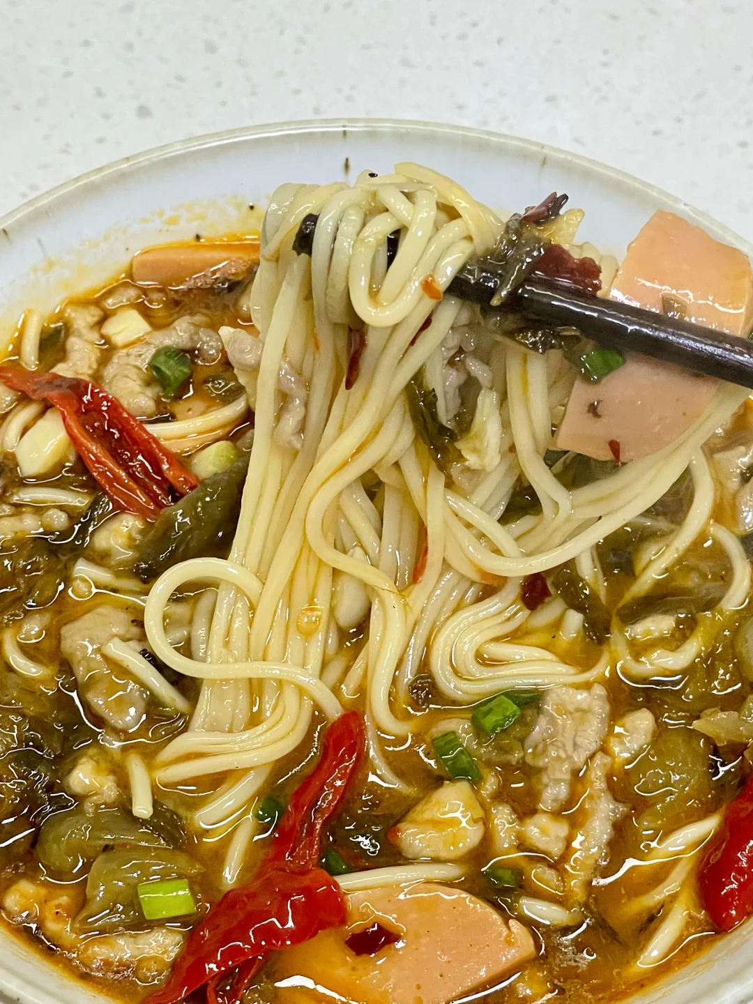 巨巨巨开胃的酸菜火腿肉丝面,附详细做法~