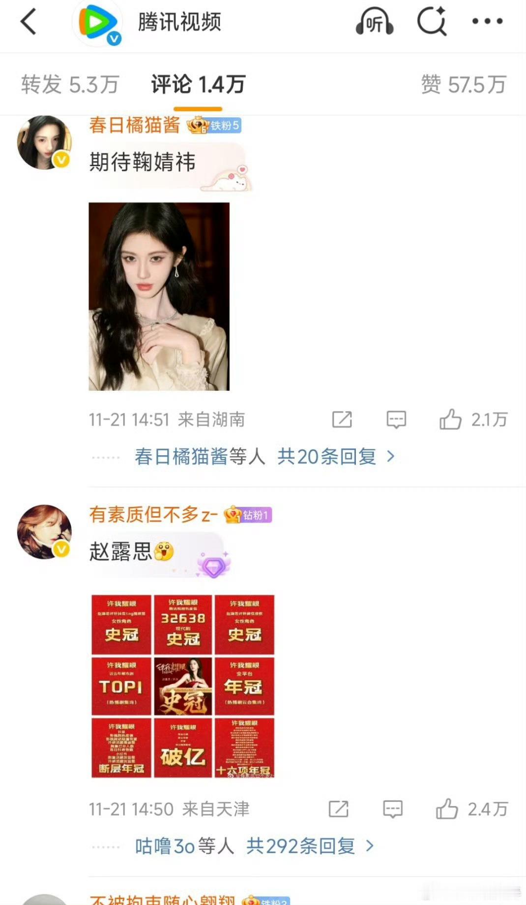 腾讯视频前排都是鞠婧祎,鞠丝kp真的很牛!