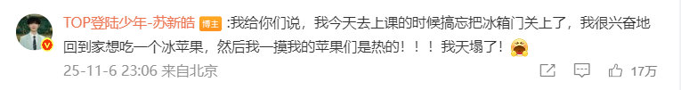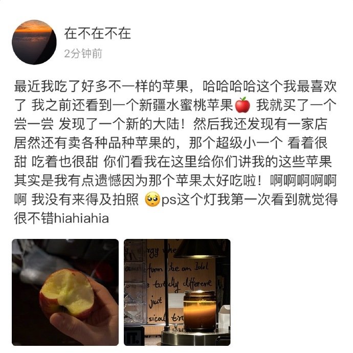 苹果也没想到有一天自己会拥有忠实粉丝吧!谁能懂 到底有多喜欢吃苹果啊,不仅打卡了有各种品种苹果的店,还会专门在冰箱里冰苹果吃咱就说小苏真是和苹果一样可爱啊