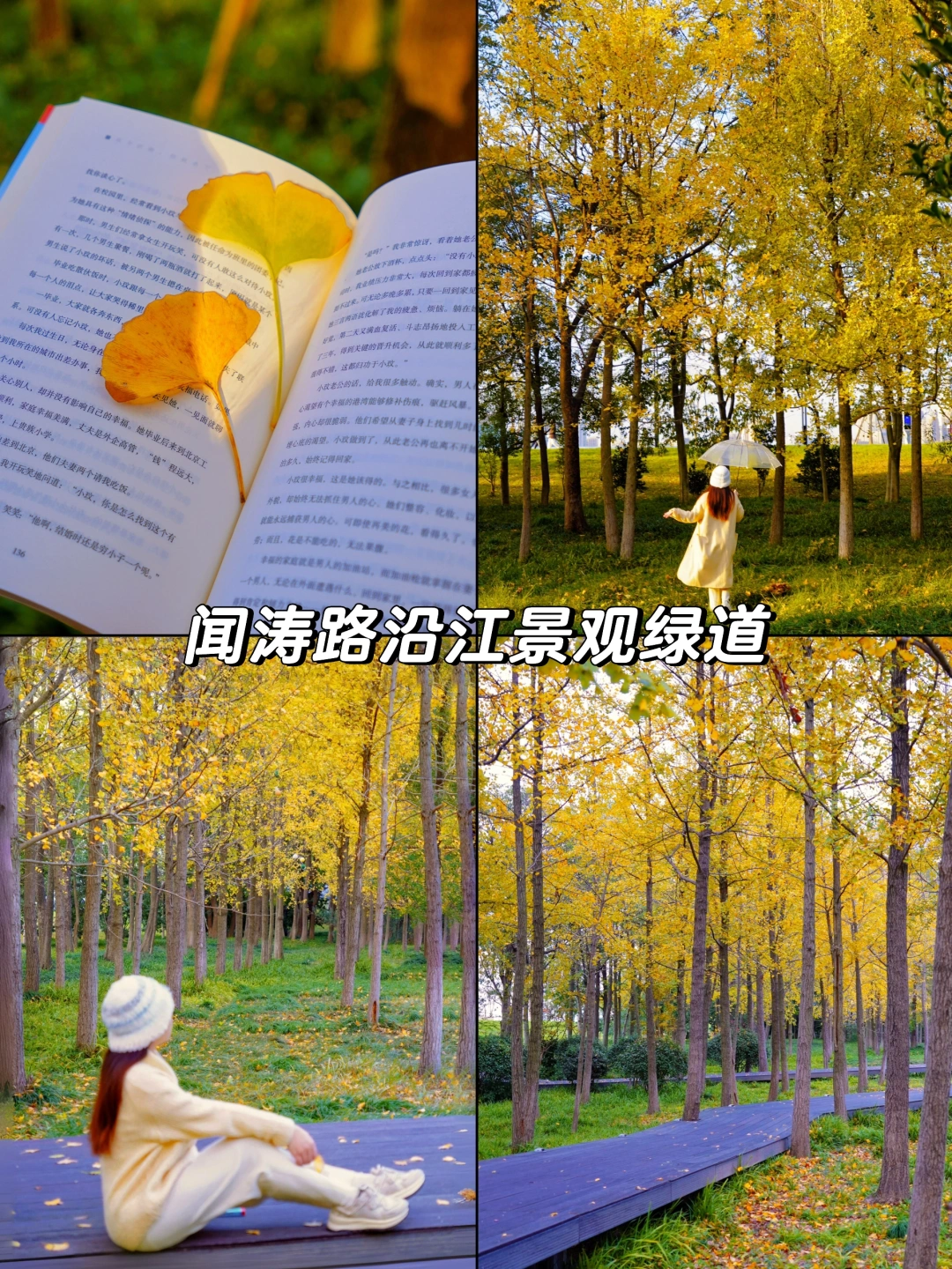 9️⃣闻涛路沿江景观绿道:“唯礼诗幼儿园”对面,滨江小众银杏林,就在钱塘江边,人少安静,傍晚还可以在江边看日落🌅