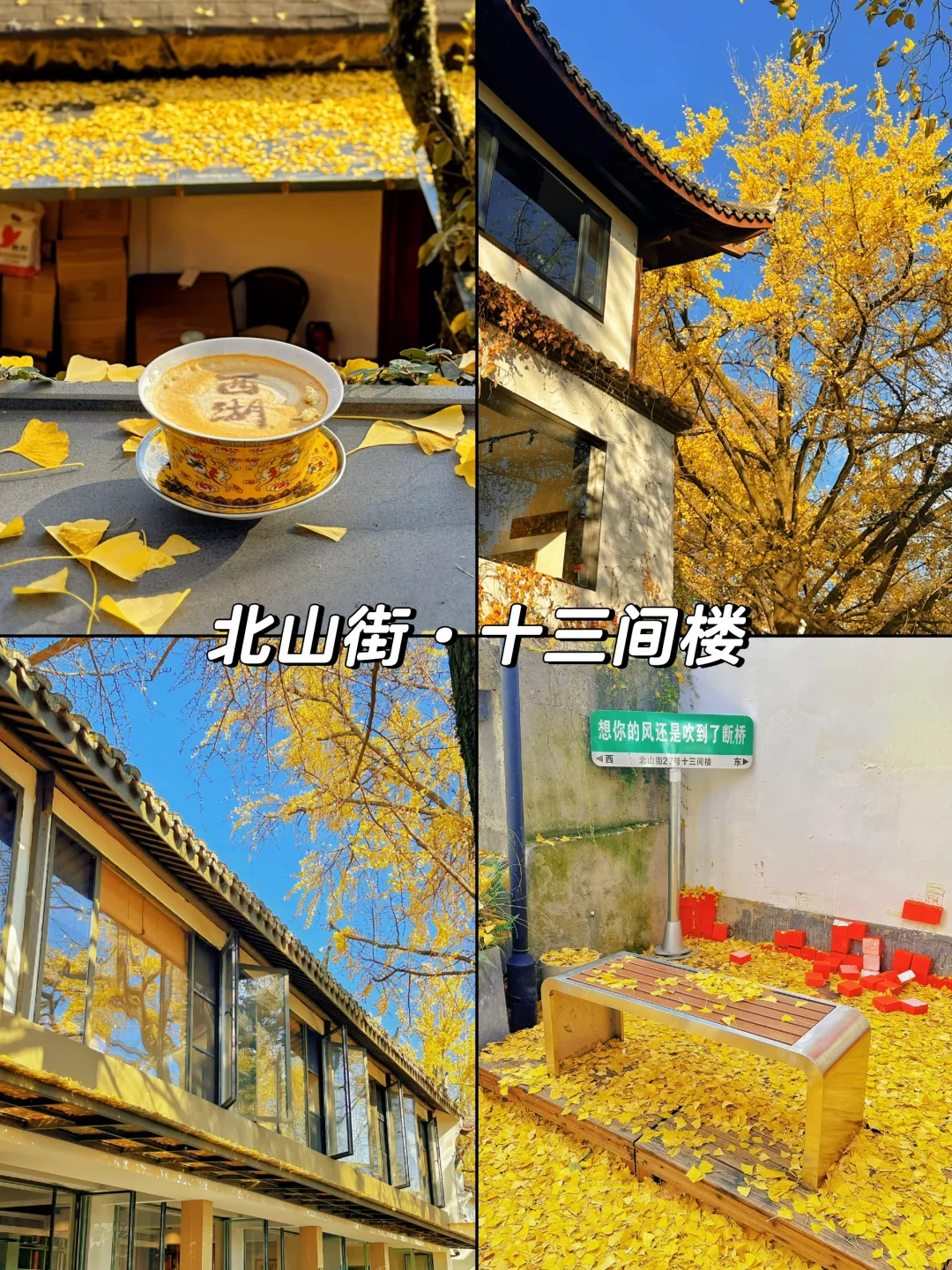 3️⃣十三间楼:在西湖北山街的茶楼🍵,庭院里有两棵百年银杏,秋冬围炉煮茶好去处。