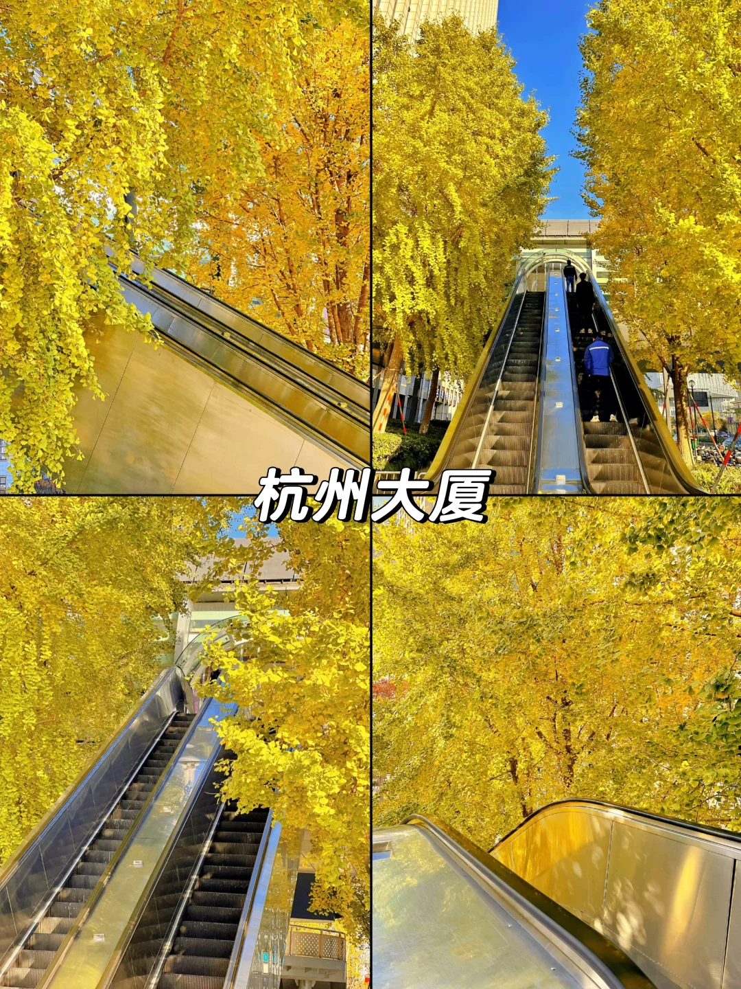 2️⃣杭州大厦C座:被银杏包围的扶梯🪜也太浪漫了,好像穿梭在金色的童话世界。