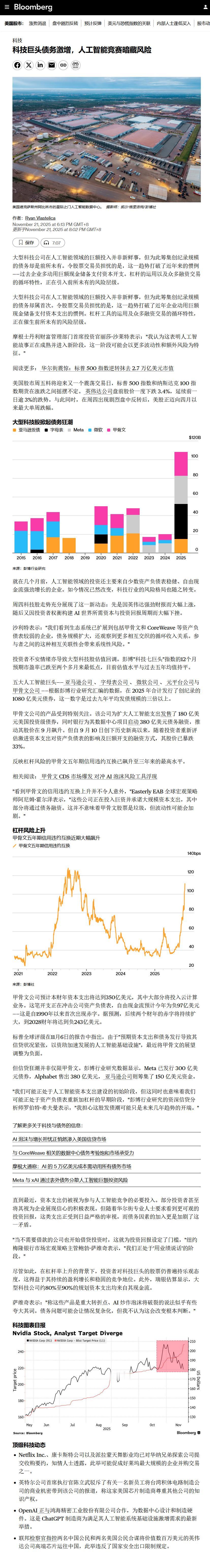 彭博:科技巨头债务激增,人工智能竞赛暗藏风险