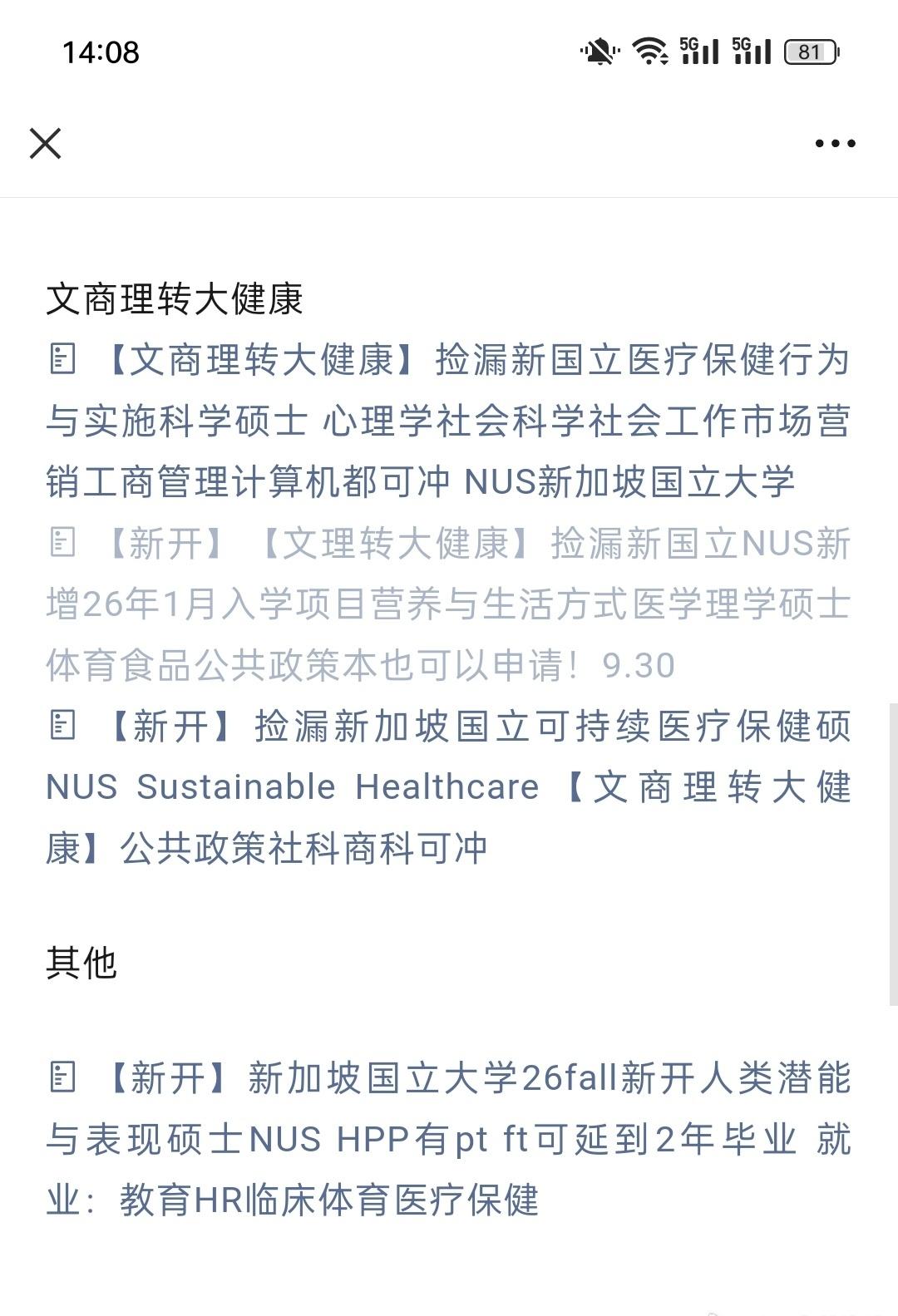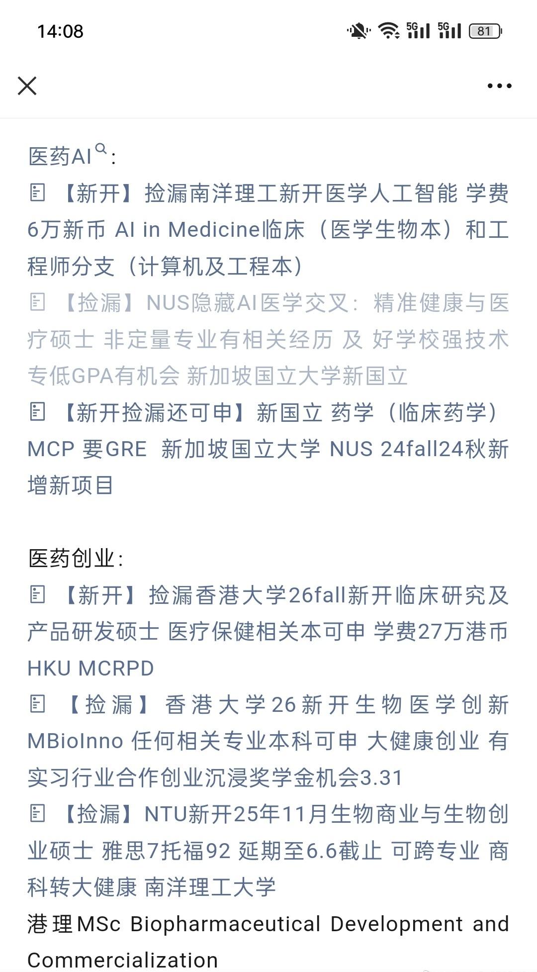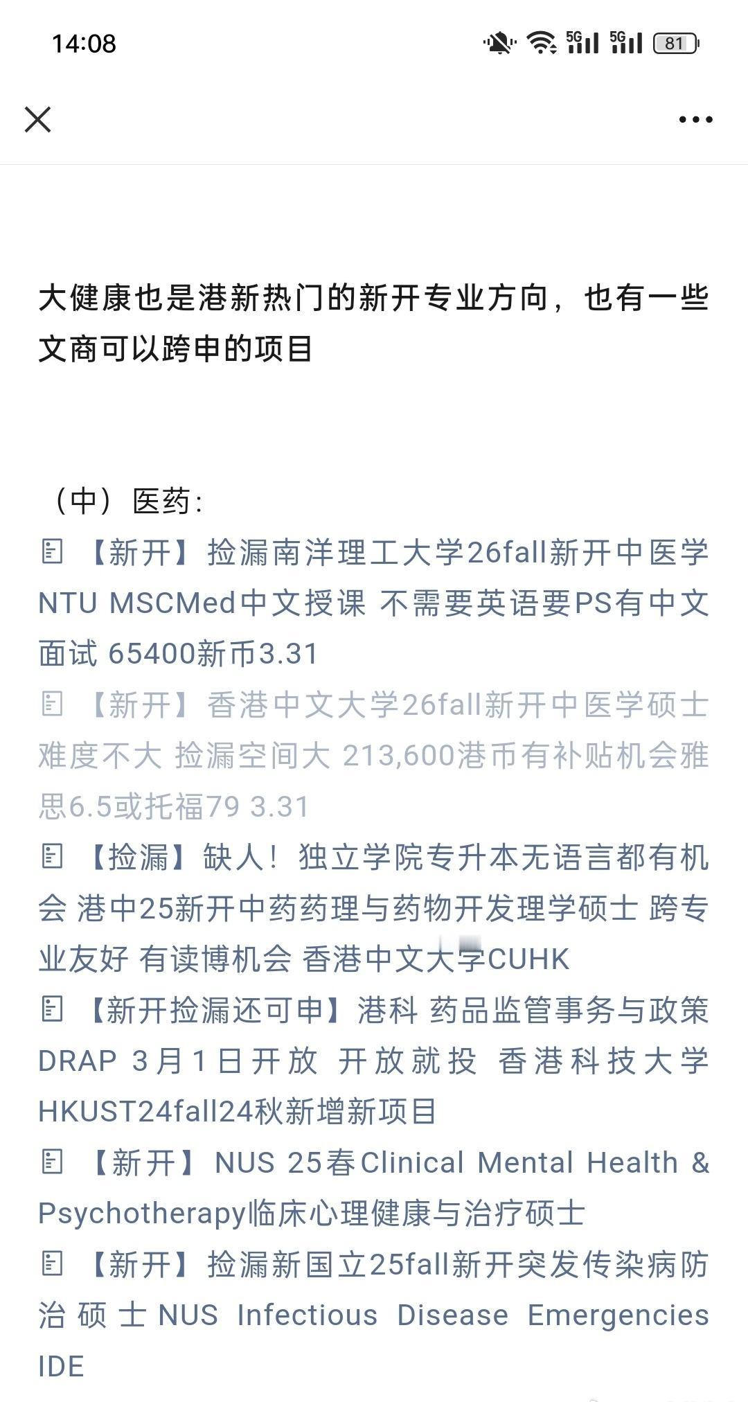 大健康专业是香港新加坡热门新开方向,部分文商跨申:(中)医药 医药AI 医药创业 文商理转大健康 新国立 南洋理工 港大港中港科
