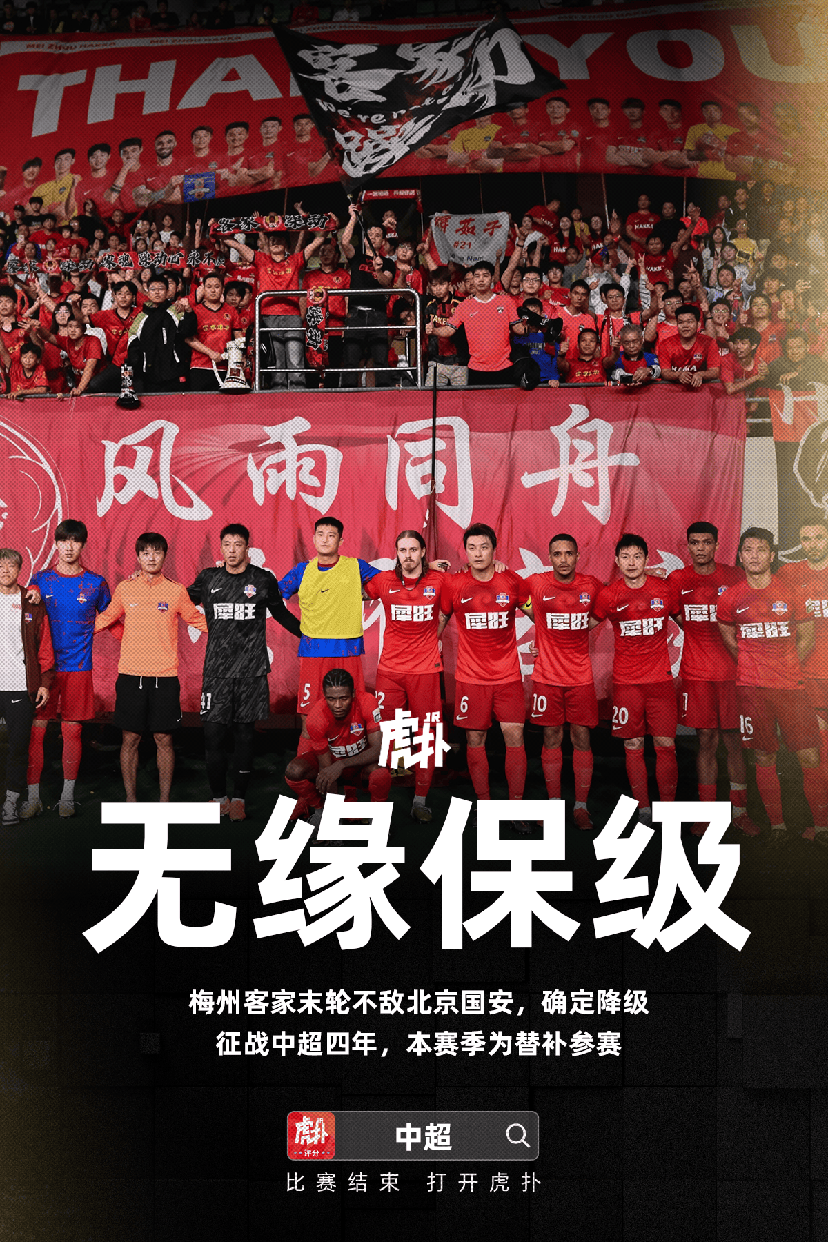 虎扑11月22日讯在刚刚结束的中超联赛最后一轮比赛中,梅州客家客场不敌北京国安,位列中超倒数第二确定降级。