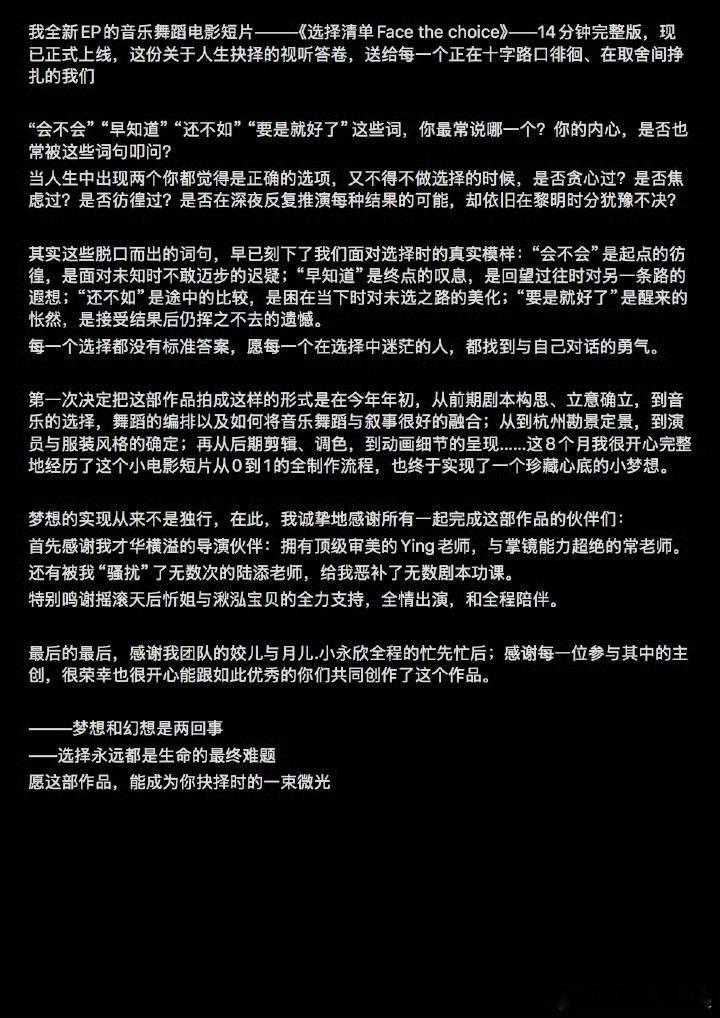 深夜的餐桌前,王霏霏把思绪整理成一篇近八百字的长文,用细腻的文字表达了对作品的珍视和对所有参与者的感谢,真诚得让人动容。