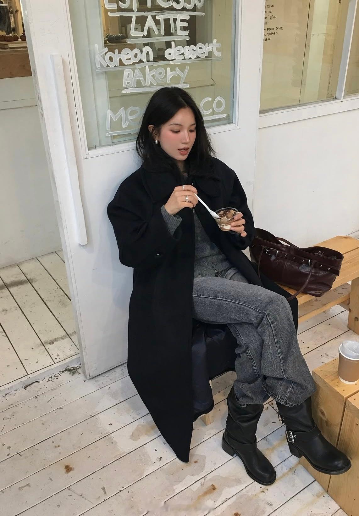 这身黑套装太好看了!短款上衣+短裙刚好显腿长,光腿神器配厚底长靴