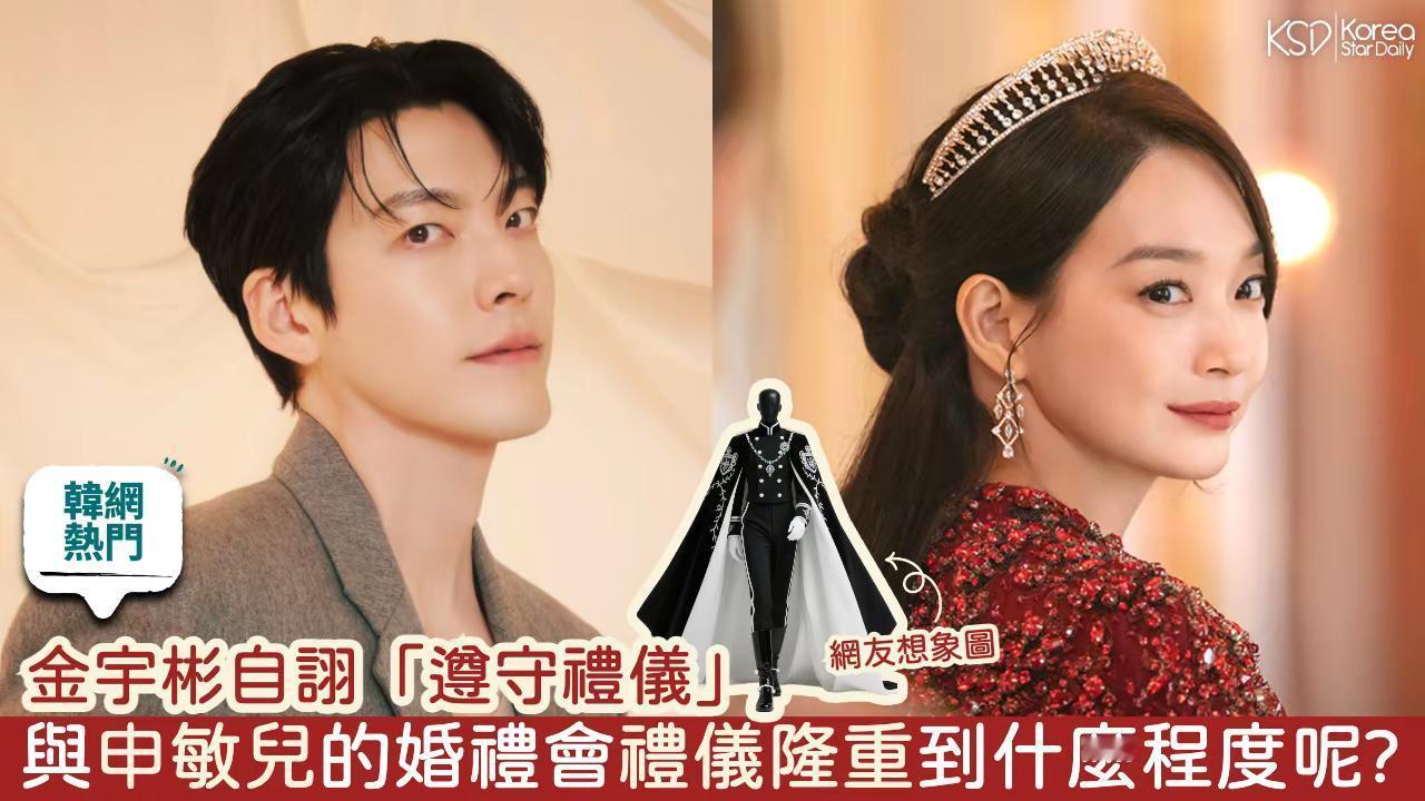 金宇彬自诩「遵守礼仪」。金宇彬自诩「遵守礼仪」,与申敏儿的婚礼会礼仪隆重到什么程度呢? 演员金宇彬本月20日公开手写信,亲自宣布与恋爱长跑10年的女友、同为演员的申敏儿结婚,让长期以来喜爱他们的粉丝感动不已!据经纪公司透露,两人的婚礼将於12月20日在首尔某处举办,现场非公开、仅邀请双方亲友。 联想到金宇彬之前出演《豆豆笑笑》时,就连短暂经过机场都要凌晨3点起床、做妆发造型、穿整套白西装加领结,自称是「遵守对观众的礼仪」,还教育出发前15分钟才起床的都敬秀也应该遵守礼仪XD这样网友们不禁好奇:到了结婚这个大日子,金宇彬究竟会「遵守礼仪」到什么程度呢? 有网友找到下图作为参考,如此浮夸的披风和纹章,不得不说... 好像真的蛮适合金宇彬耶? ! 韩国网友评论: 1. 天呐,我感觉超适合他耶! 2. 简直是为金宇彬量身打造的衣服kkk 3. 拜托一定要穿一次给大家看,太期待了kkk 4. 如果在婚礼上穿有点为难的话,至少拍婚纱照时穿这套吧!5. 毕竟是人生最重要的日子,礼仪水准高一点又何妨呢! 6. 比新娘更抢眼的新郎kkk 7. 要跟娜菲尔皇后结婚的话,这套还是太弱了,请穿得更加辉煌灿烂吧~~(*申敏儿在新剧《再婚皇后》里饰演「娜菲尔皇后」) 8. 拍一套「初婚皇后」吧kkk 9. 我赞成,希望两位都穿得超级华丽,像女王和君王一般kkk 10. 衣服完全是奇幻浪漫小说的画风,但感觉他完全能驾驭,超好奇啊kkk 11. 拜托,两个人都保持礼仪吧!一定超级适合的kkk 12. 一想到他俩都穿得礼仪庄重,就笑得颧骨压不下来kkk