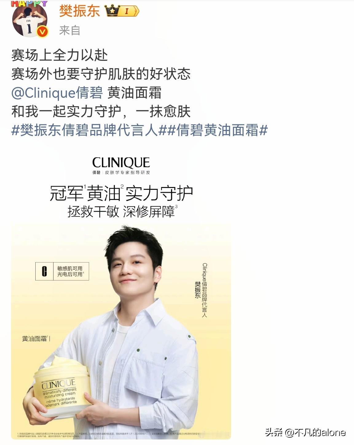 万万没想到,我们没等来樊振东的获奖感言,但东东却官宣了新的商务代言,可喜可贺。 11月22日,樊振东官宣成为倩碧品牌代言人。 东东倒是很适合这个代言,因为他的皮肤特别白,可能有些艺人都没有他的皮肤好。 樊振东在获得全运会男子单打冠军后,他并没有给球迷们留下什么话语,他只想安安静静地打球,喜欢他的球迷们都特别理解东东。 接下来,樊振东将前往德国打球,期待他的球技更上一层楼。
