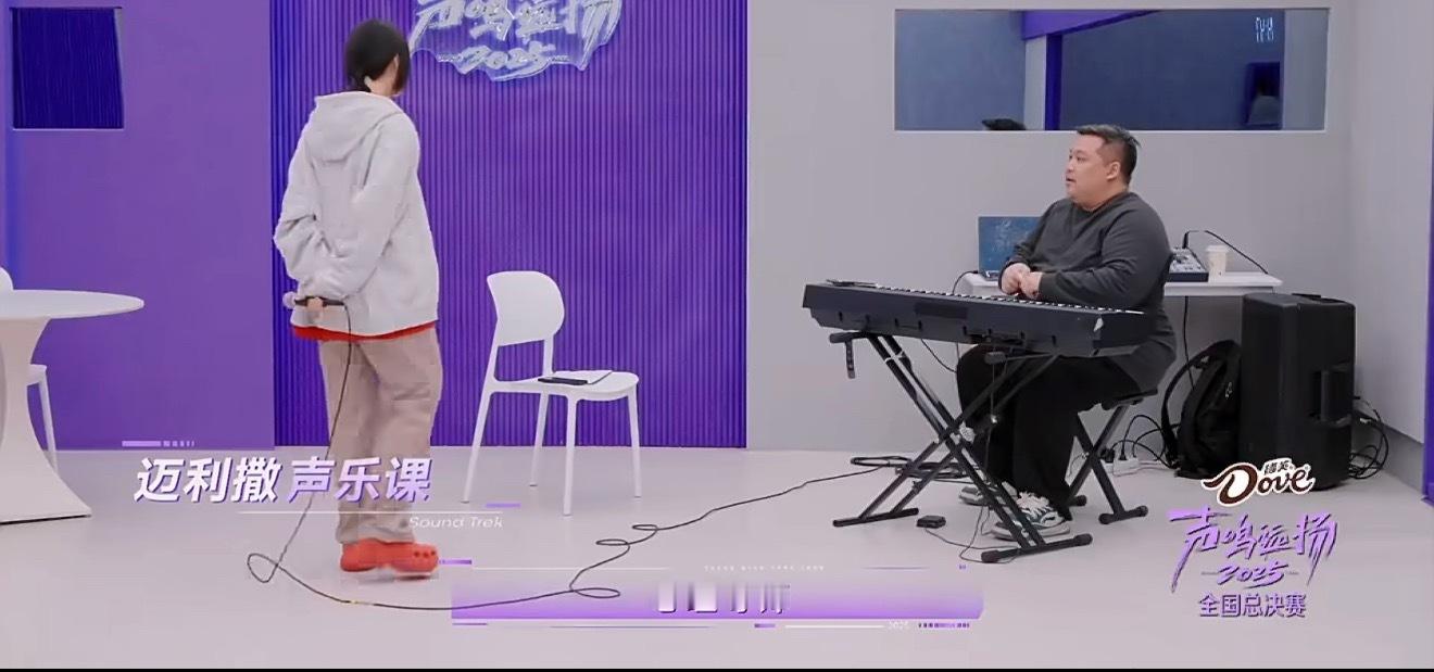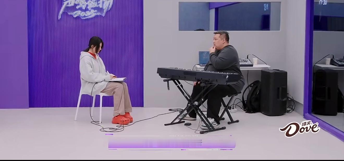 小迪丽热巴迈利撒表示自己对于这次比赛很焦虑,觉得自己和包美琳像双胞胎对唱,怀疑自己的独特性,老师表示每个人都是不同的,要自信一点🤔。