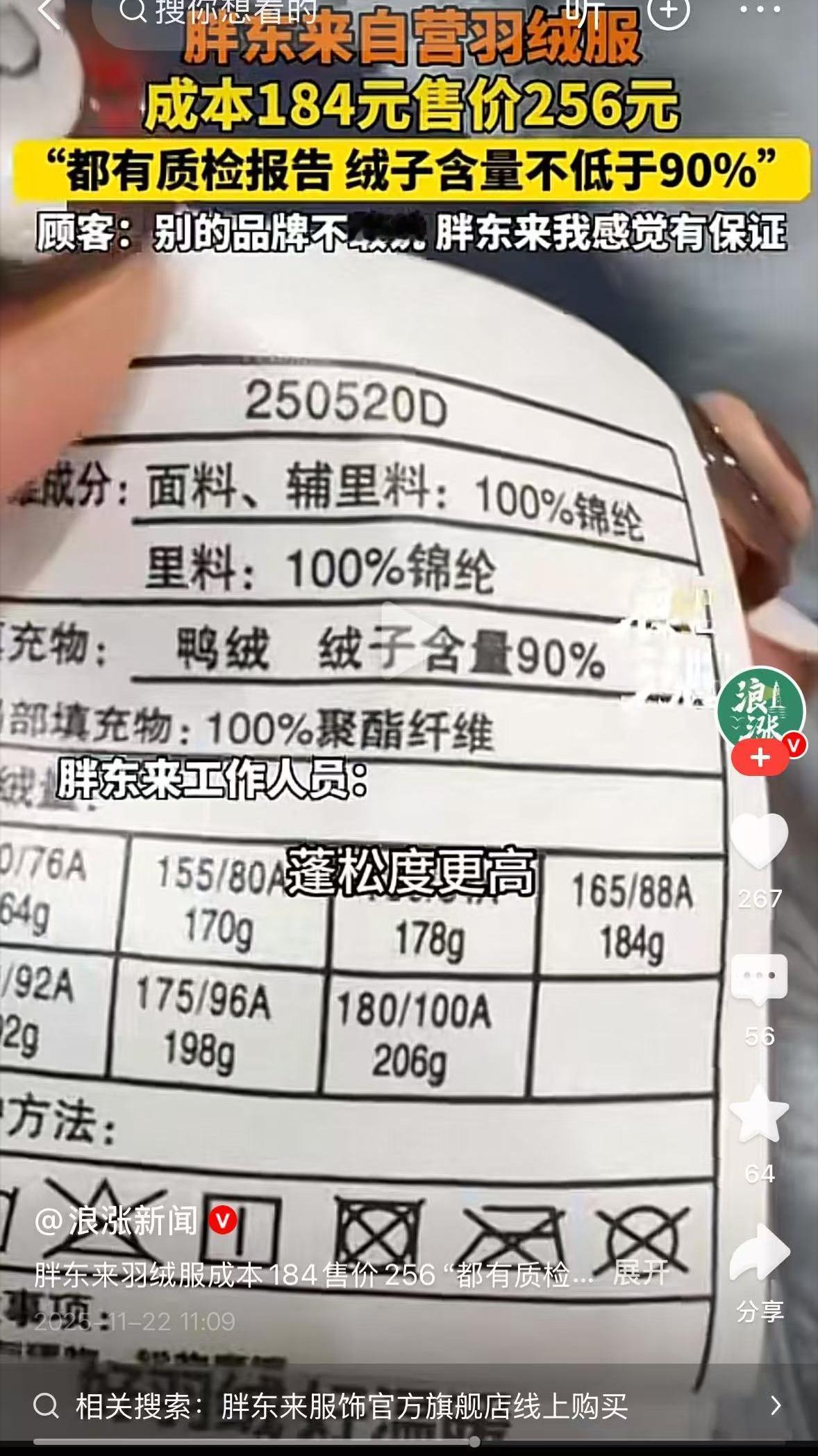 胖东来开始卖羽绒服了?成本价184只卖256,这么便宜的吗? 冬天来了,羽绒服又成必备的衣服了,但是羽绒服越来越贵,保暖成了奢侈。 胖东来卖的羽绒服不仅价格实惠,而且每一件都有质检报告,面料也不是差的,羽绒服绒子的含量不低于90%。 现在网上有很多人说买了胖东来的羽绒服,这么实惠的羽绒服很少见,买的人自然就多了。 羽绒服一般的市场价差不多是成本价的三倍,胖东来只赚几十块钱,很良心了。 胖东来在服务、员工福利、经营方面的形象都是很好的,好评也非常的多。 这次卖羽绒服又成功收获了一波粉丝。 目前胖东来的羽绒服只在河南本地门店销售,外地消费者买不到,很多人想让胖东来开线上售卖渠道。 但是线上售卖渠道开了的话就会有很多的假货出来。不过具体会不会开还不一定呢。