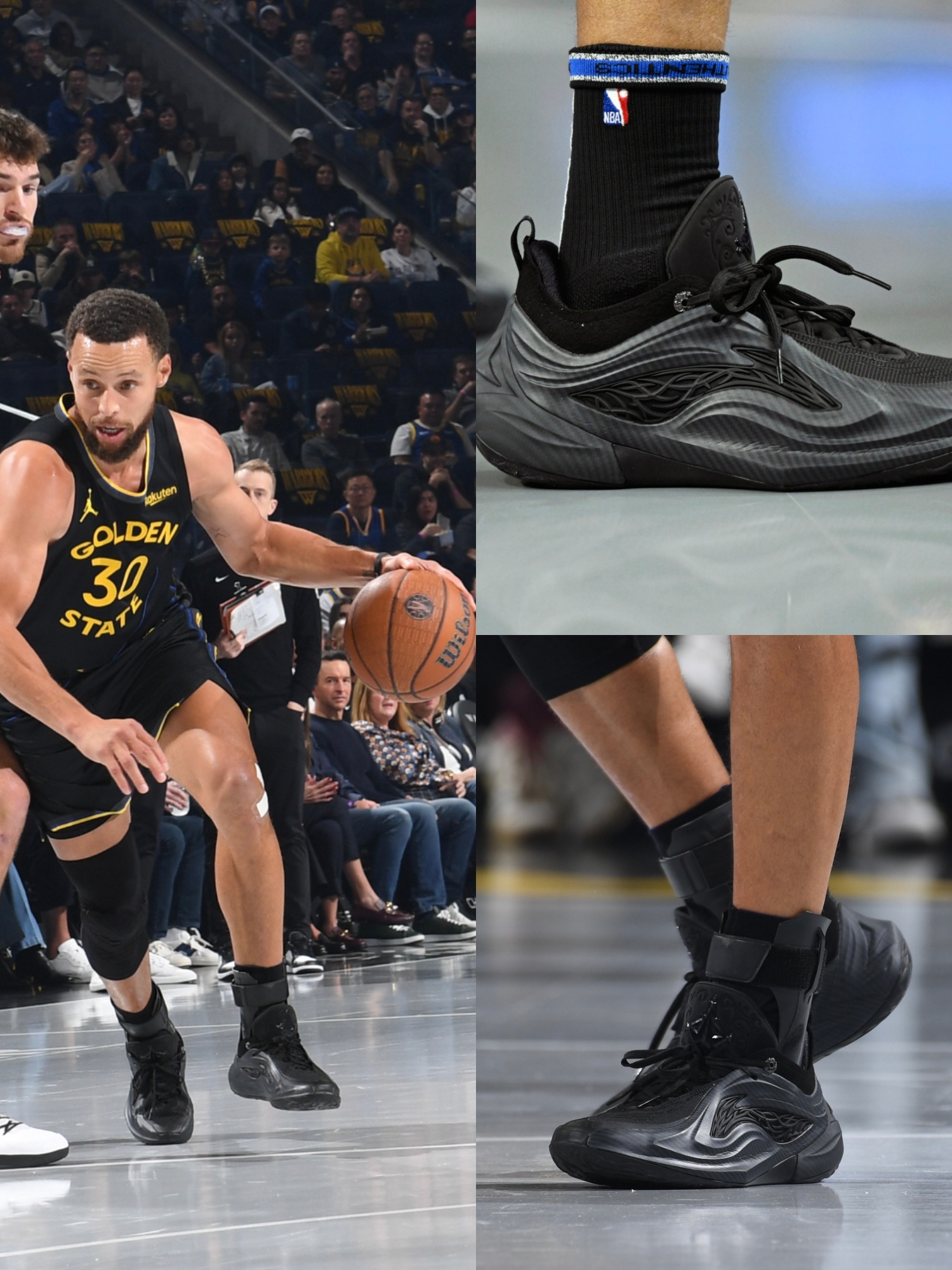 库里上脚李宁巴特勒4代黑骑配色,第二节出场6分钟,投篮6中6、三分5中5、罚球1中1狂砍18分,上半场23分。勇士以72-65领先开拓者。